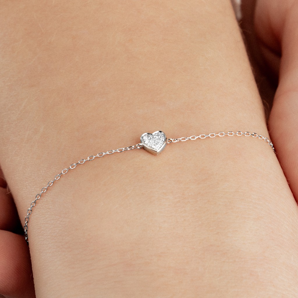 Balto aukso apyrankė su deimantais "Širdelė"