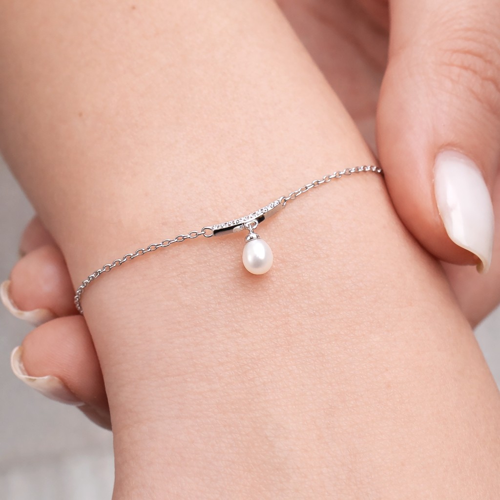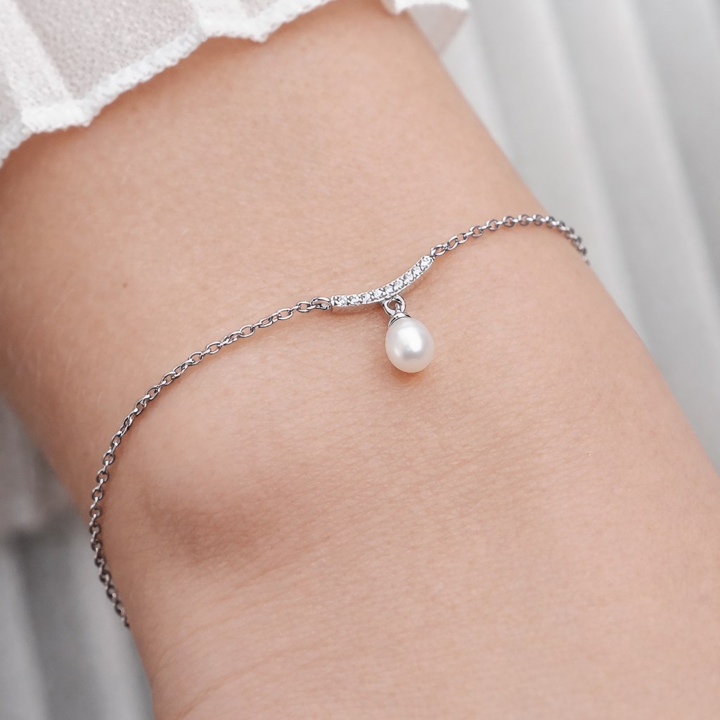 Sidabrinė Apyrankė Su Perlu Ir Cirkoniais - Perlų apyrankės - Goldinga