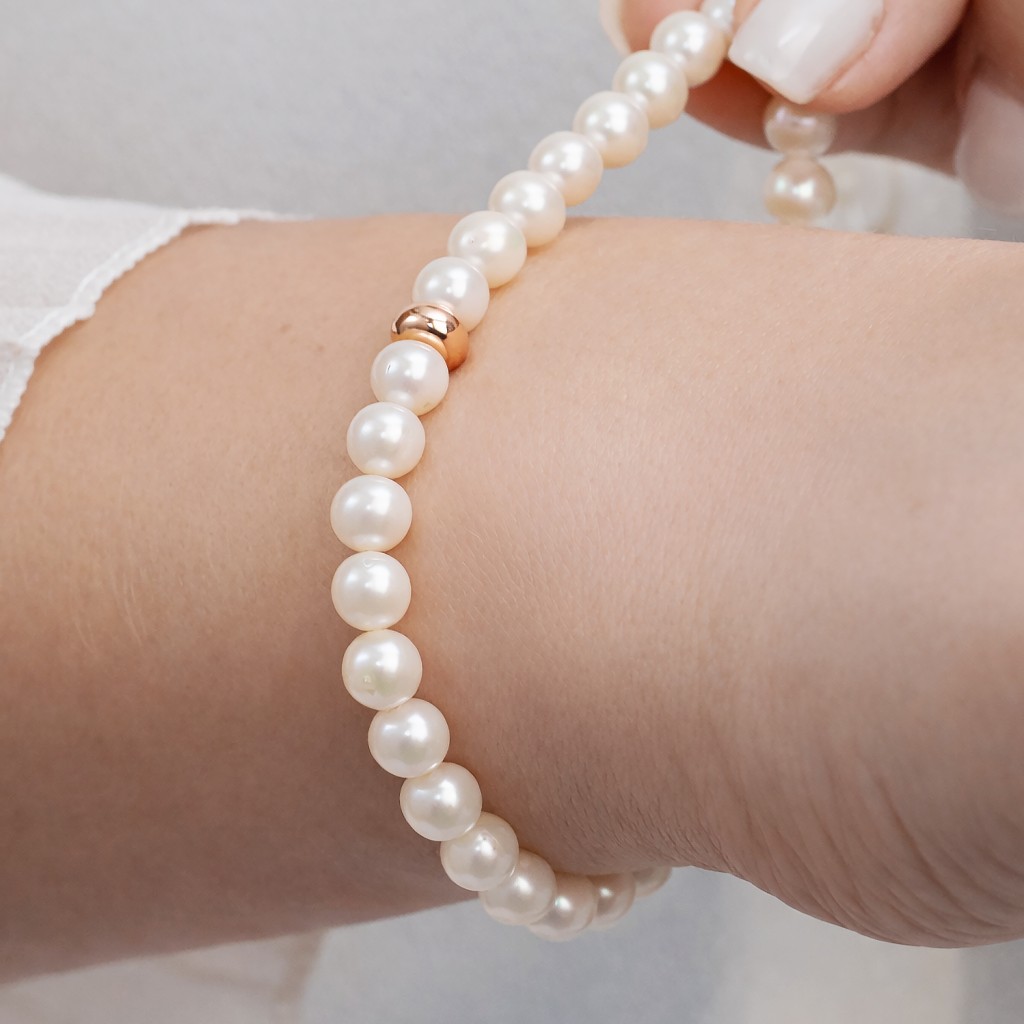 Perlų Apyrankė Su Paauksuotu Sidabru