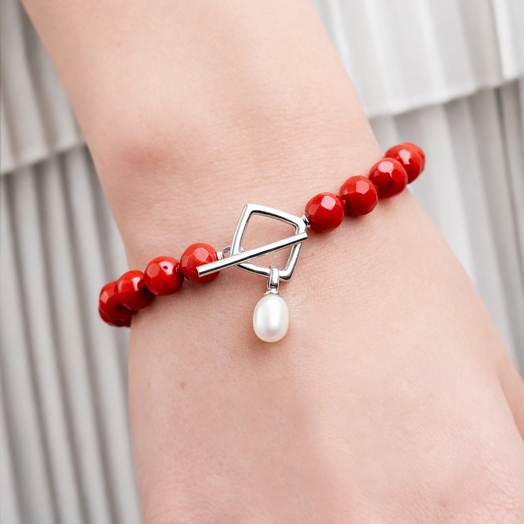 Apyrankė su koralais ir perlu