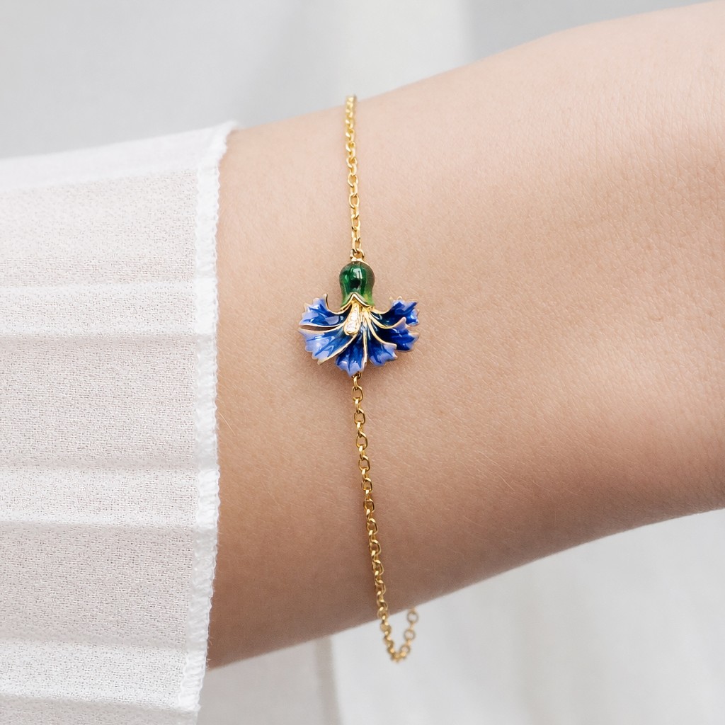 Paauksuota sidabrinė apyrankė su emale