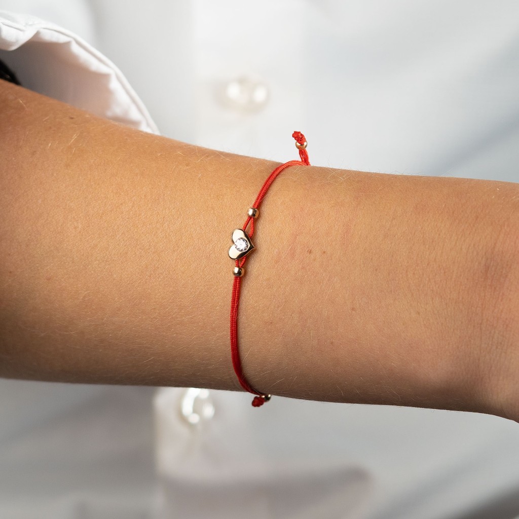 Raudono Siūlo Apyrankė Su Auksiniu Pakabuku "Širdelė"