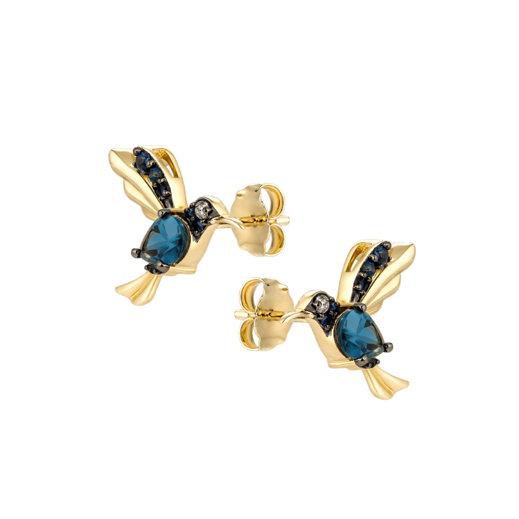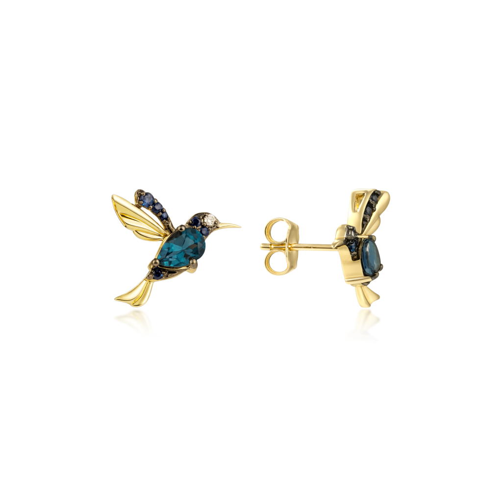 Geltono aukso auskarai su safyrais, topazais ir demantais