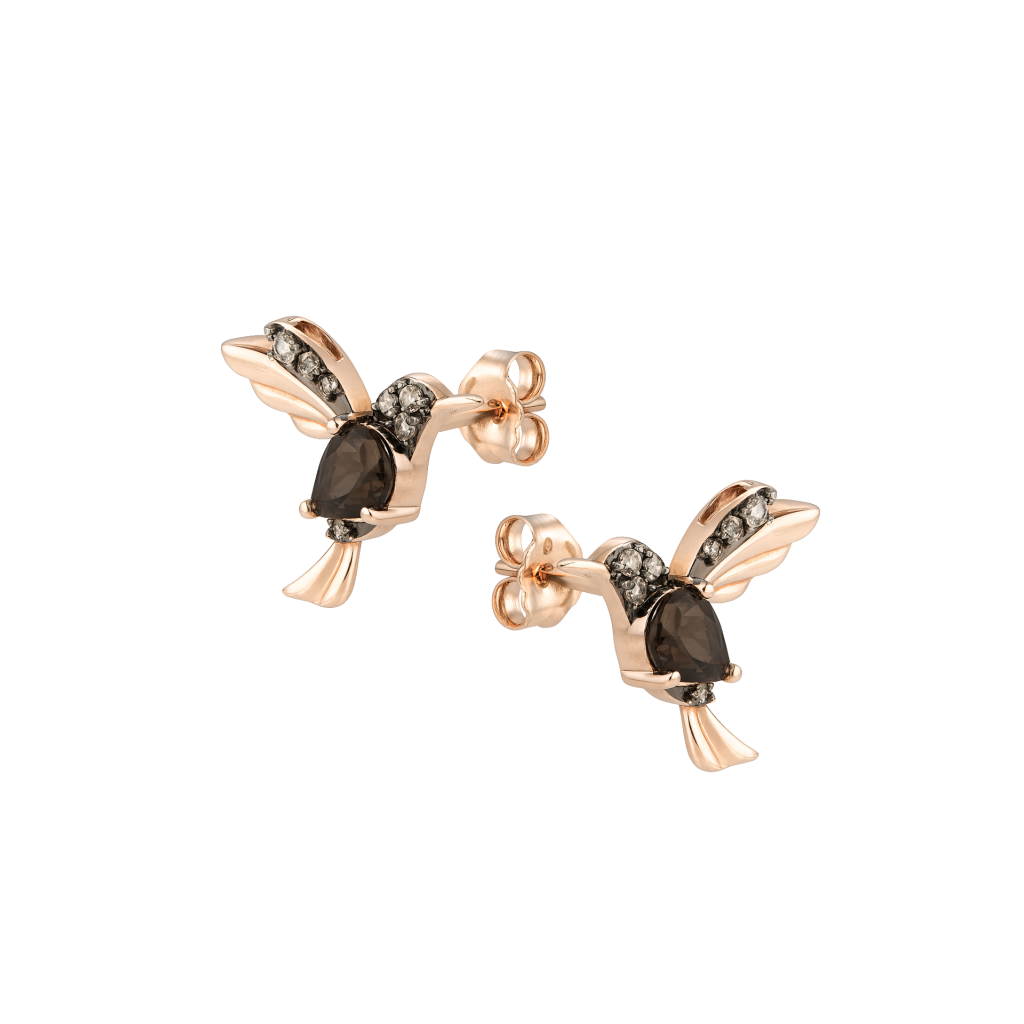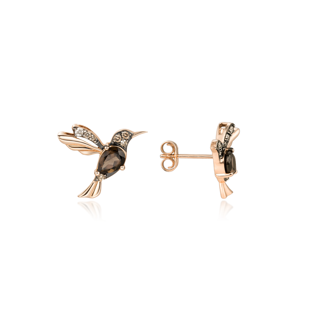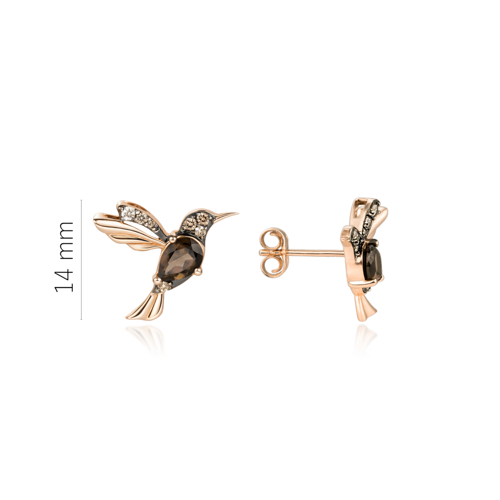 Auksiniai auskarai su dūminiu kvarcu ir demantais