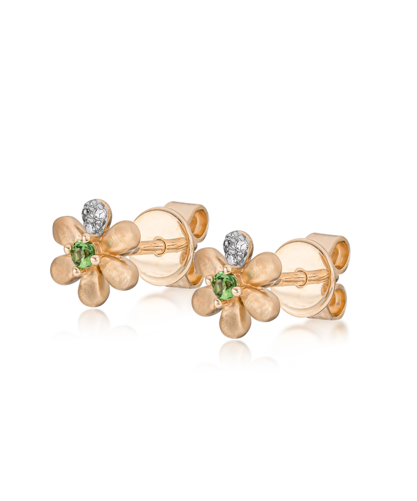 Auksiniai auskarai su deimantais ir tsavoritais "Gėlytės"