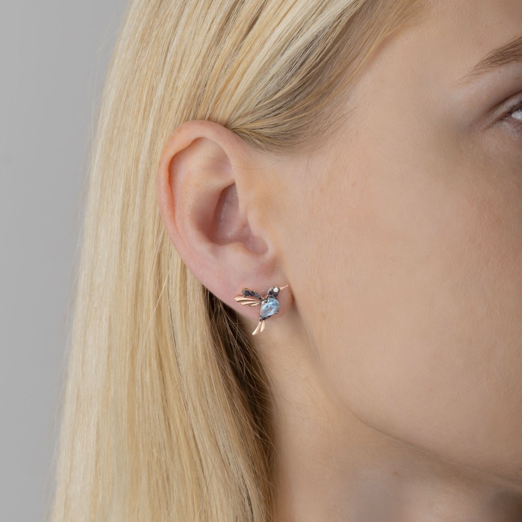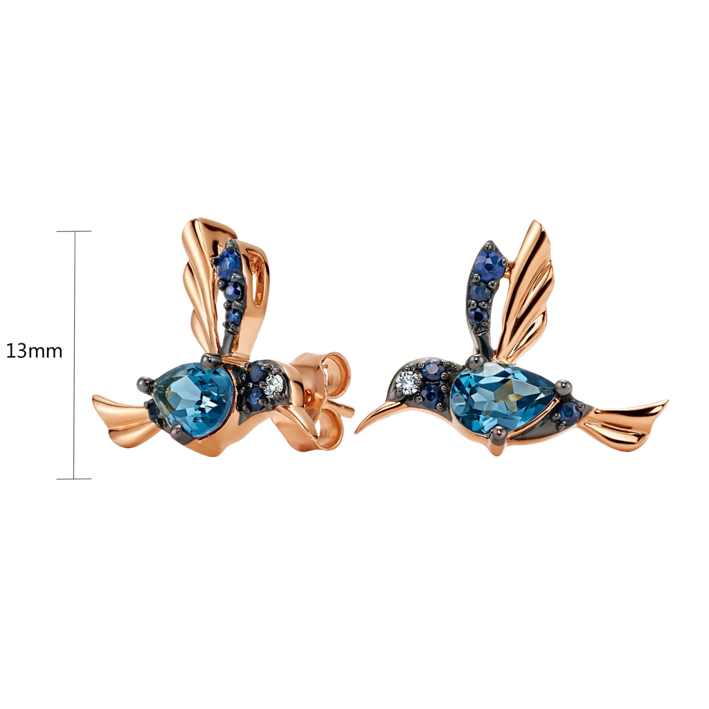 Auksiniai auskarai su topazais, safyrais ir briliantais  - Goldinga
