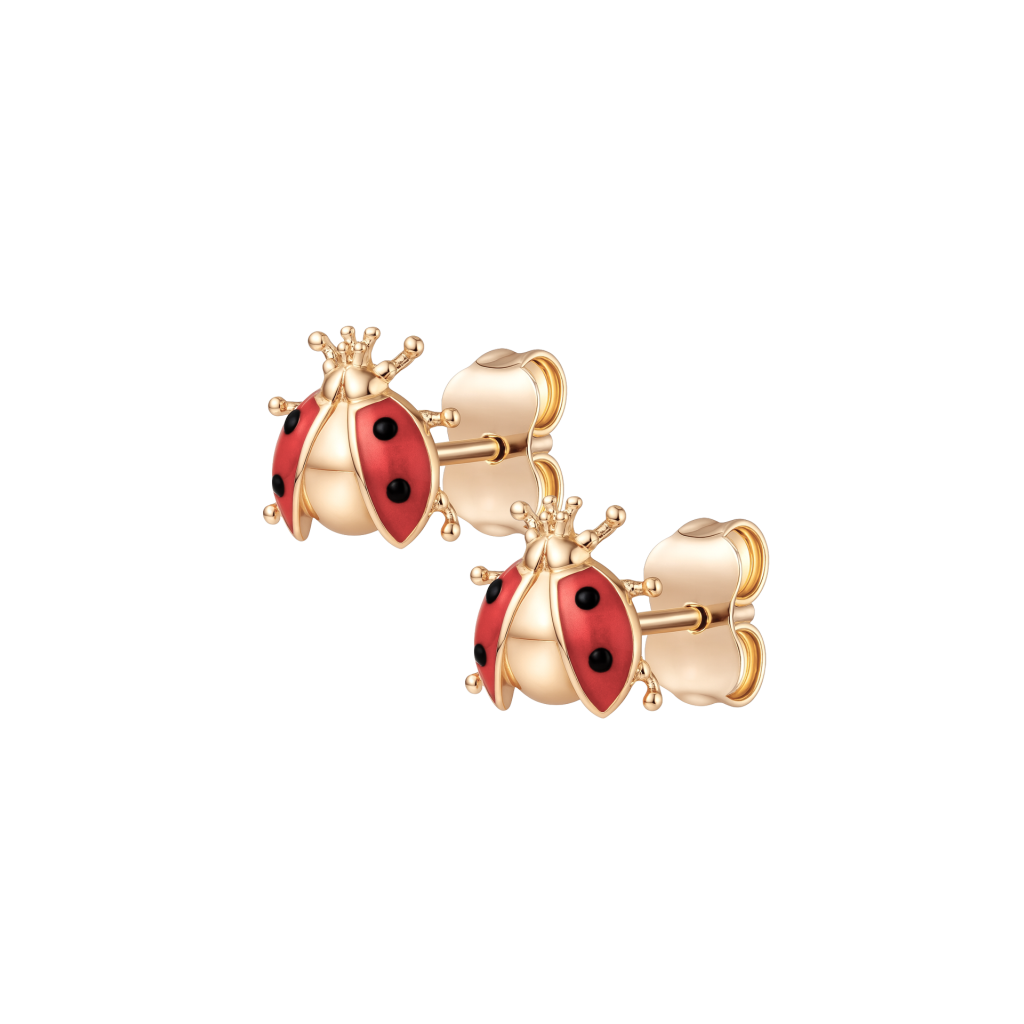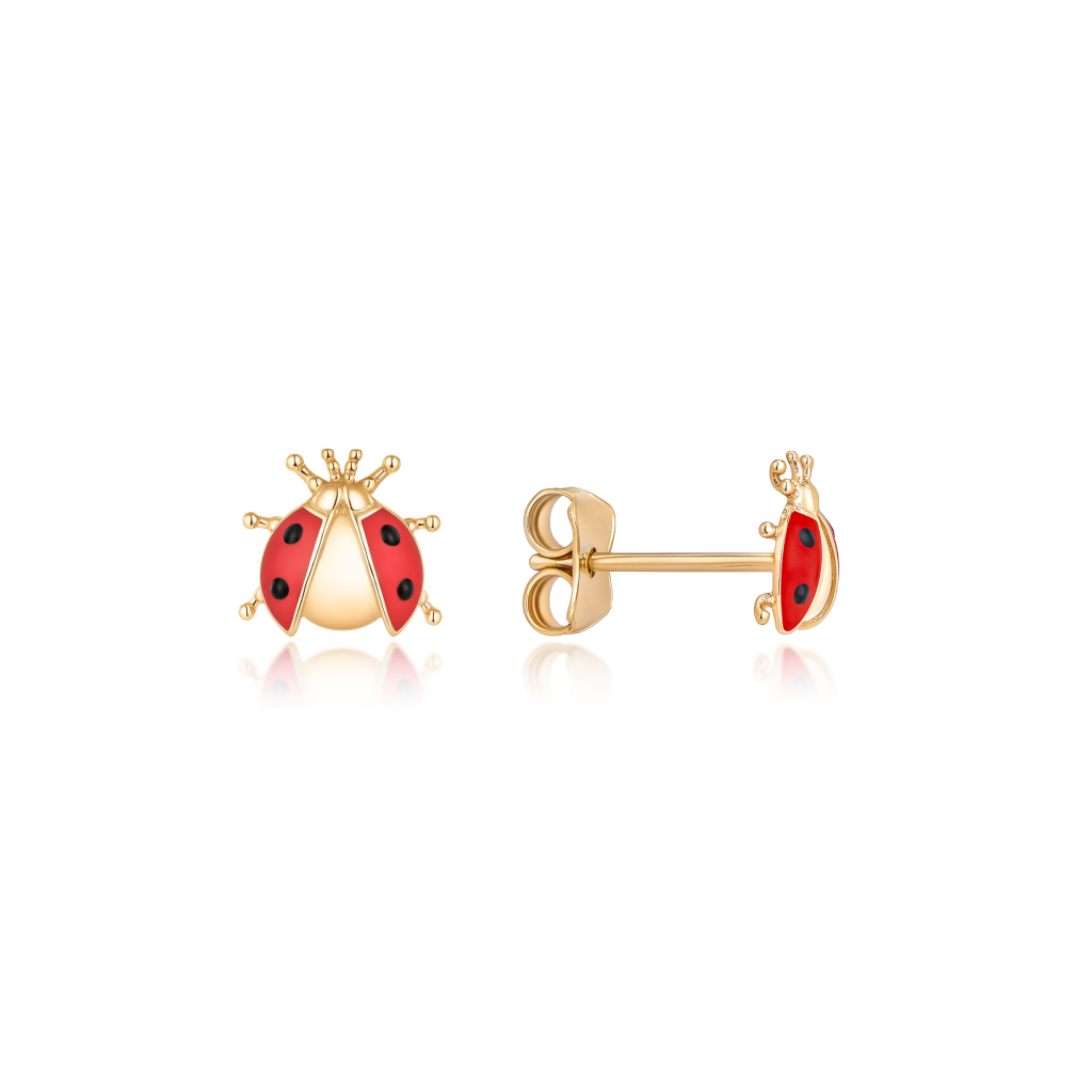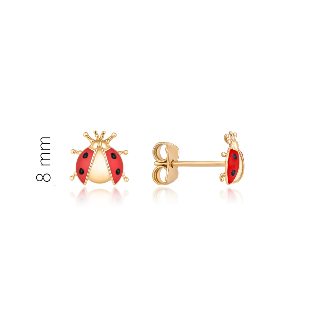 Auksiniai auskarai su emale "boružėlės"
