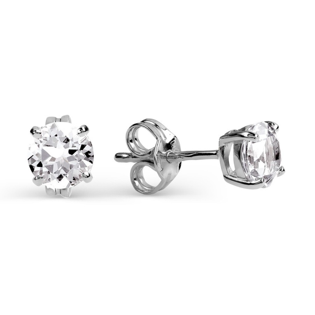Balto aukso auskarai su kristalu - Auksiniai auskarai - Goldinga