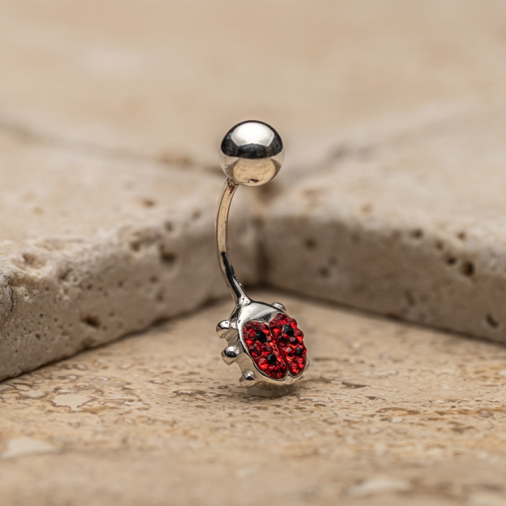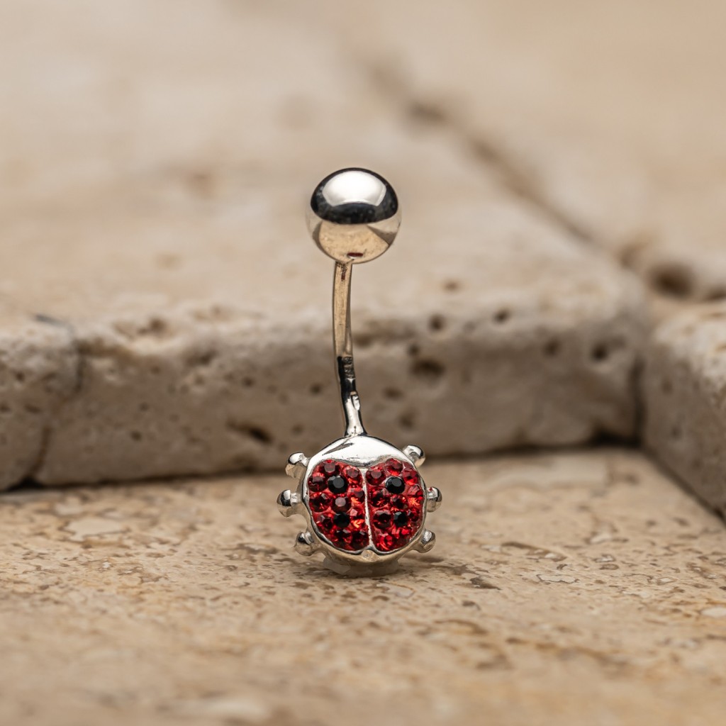 Sidabrinis auskaras į bambą su kristalais "Boružėlė"