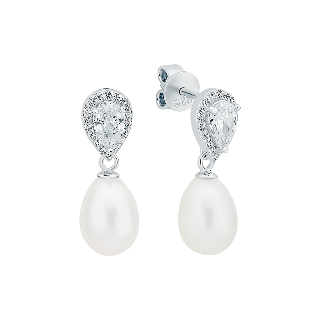Sidabriniai auskarai su perlais ir cirkoniais - Auskarai su perlais - Goldinga