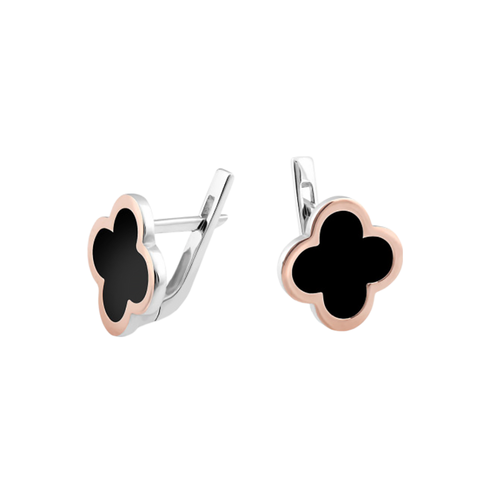 Sidabriniai auskarai dengti auksu su oniksu - Sidabriniai auskarai - Goldinga