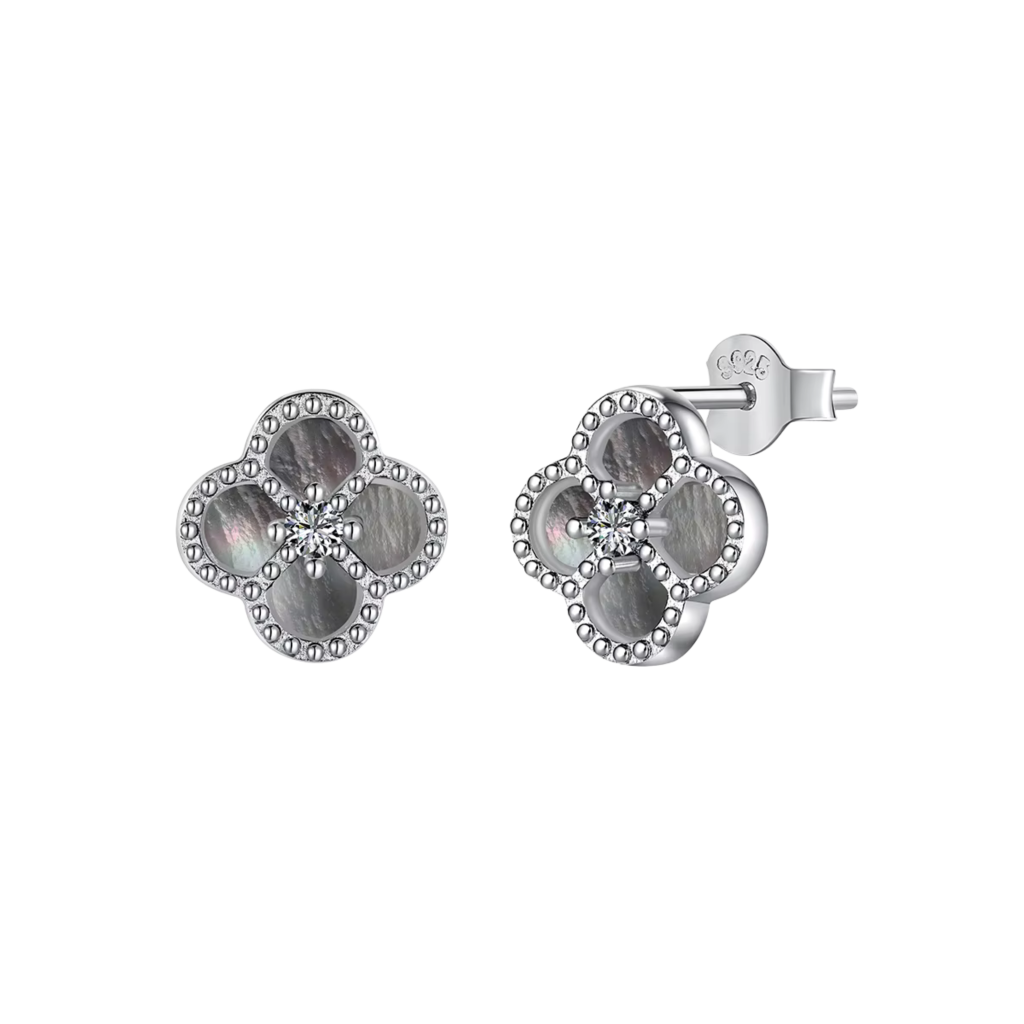 Sidabriniai auskarai su perlamutru ir cirkoniais