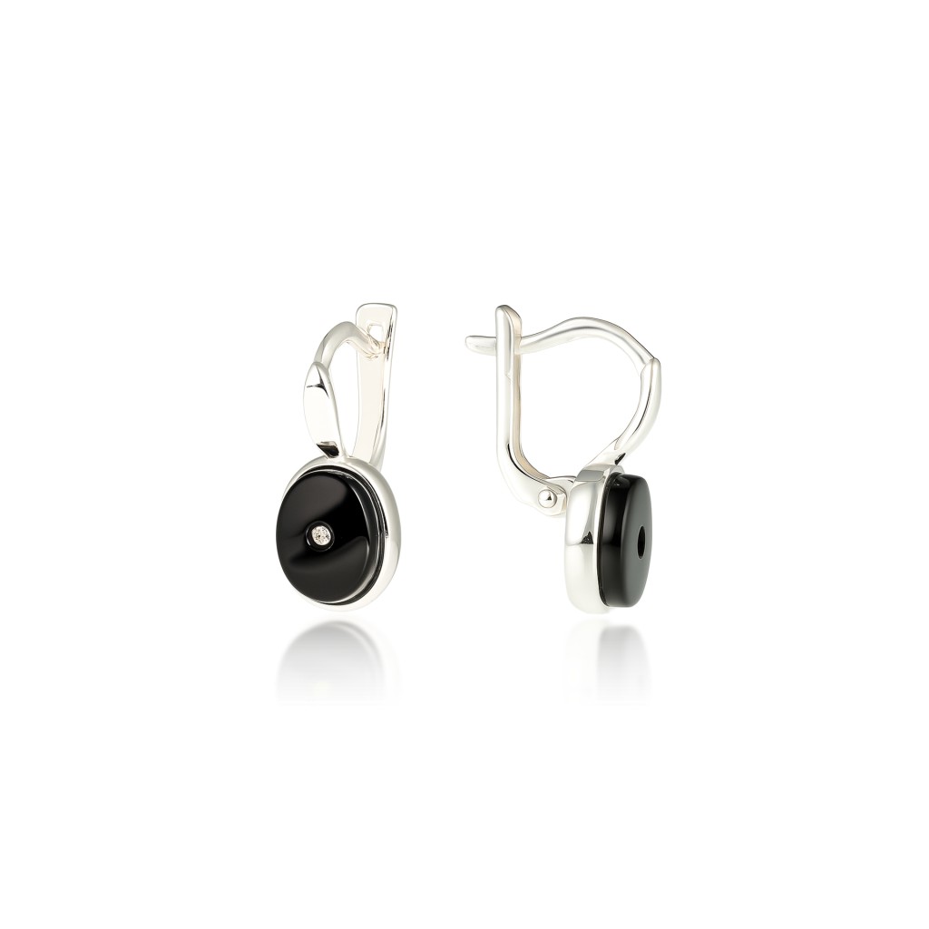 Sidabriniai auskarai su oniksu