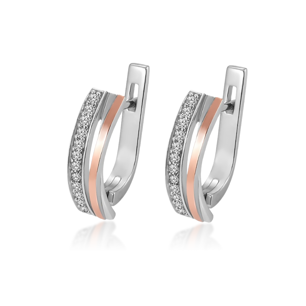 Sidabriniai auskarai su cirkoniais dengti auksu - Sidabriniai auskarai - Goldinga