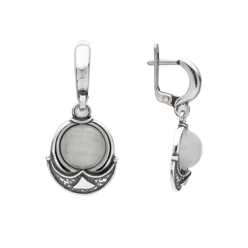Sidabriniai auskarai su katės akies akmeniu - Sidabriniai auskarai - Goldinga