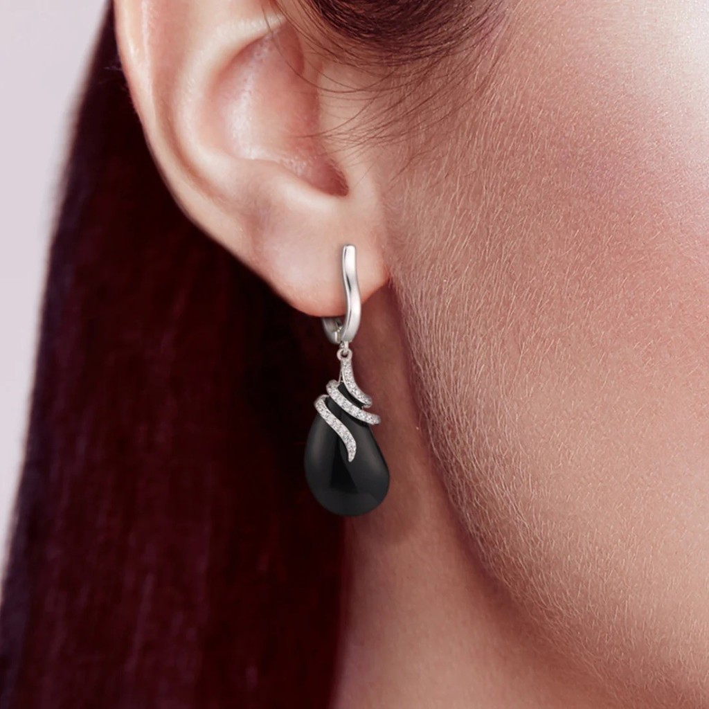 Sidabriniai auskarai su cirkoniais ir keramika