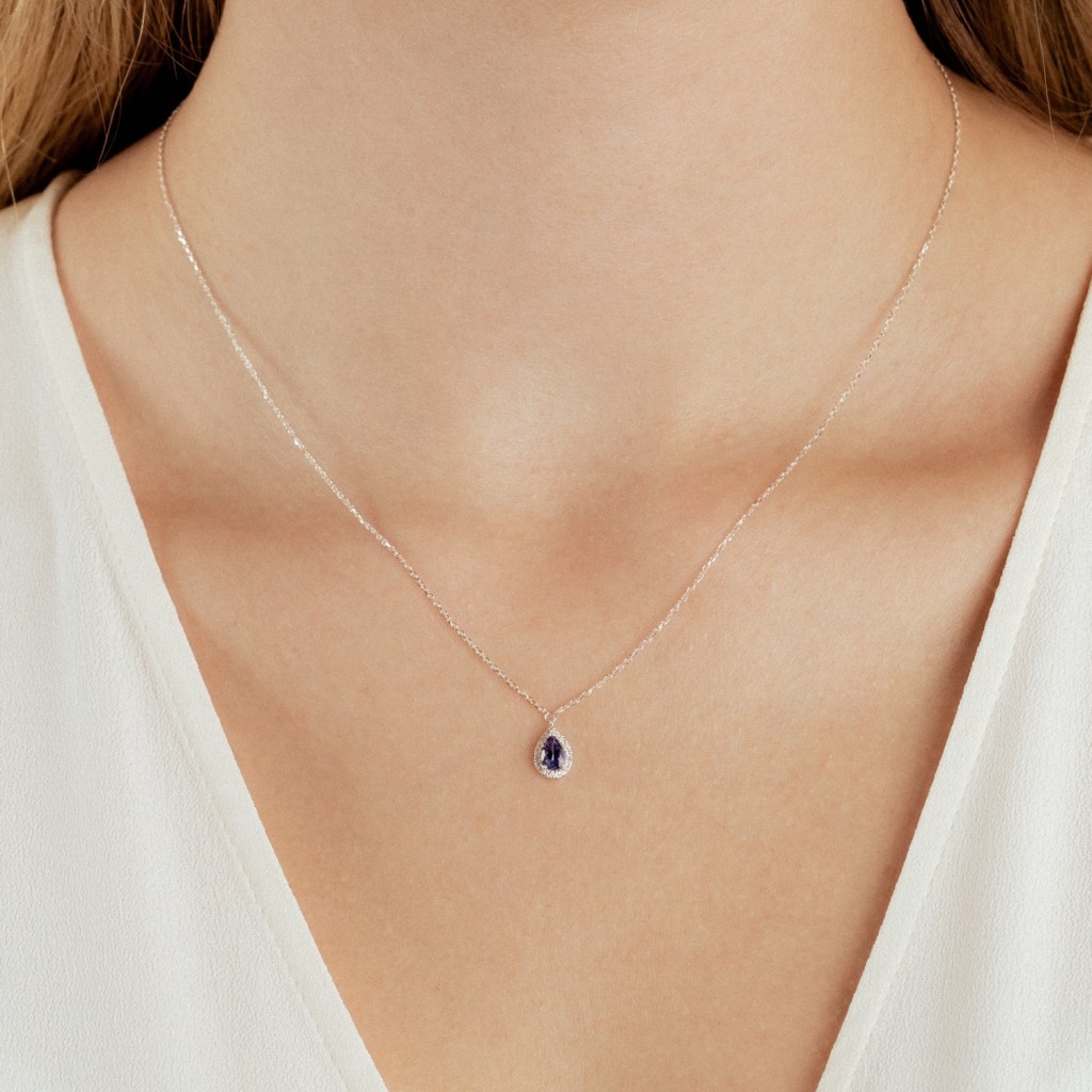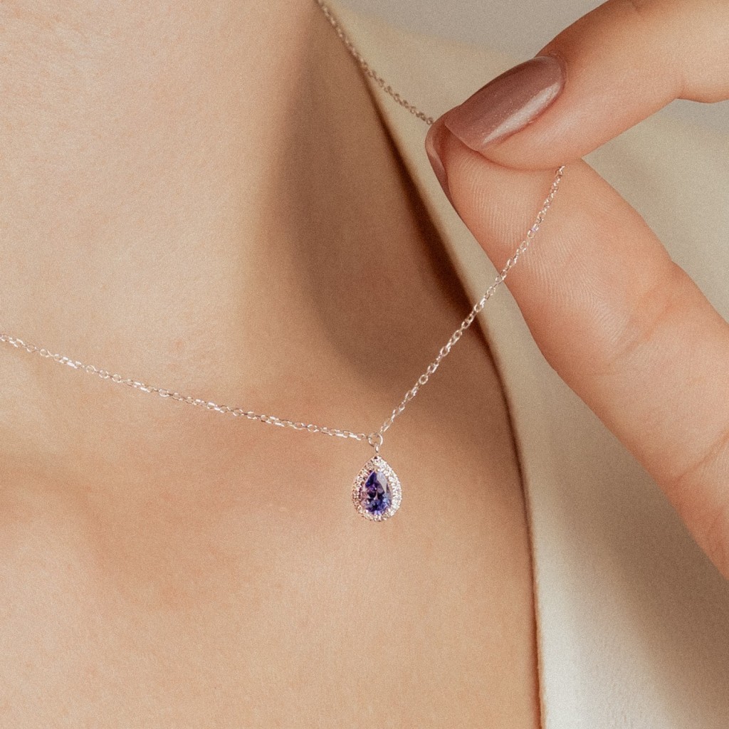 Balto aukso grandinėlė su tanzanito ir deimantų pakabuku