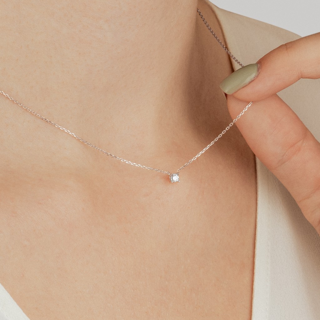 Balto aukso grandinėlė su briliantiniu pakabuku