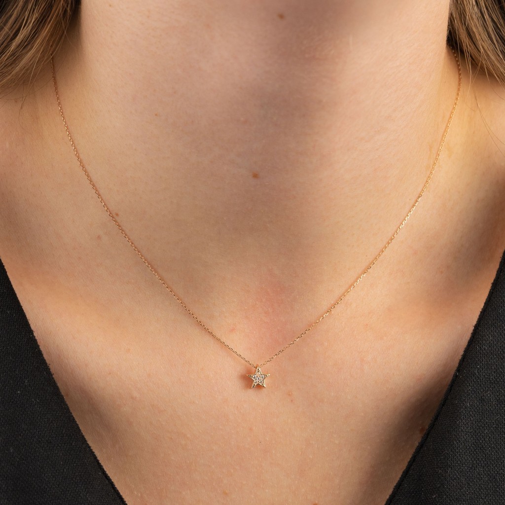 Auksinė grandinėlė su cirkonio pakabuku "Žvaigždė" - Auksinės grandinėlės su pakabukais - Goldinga