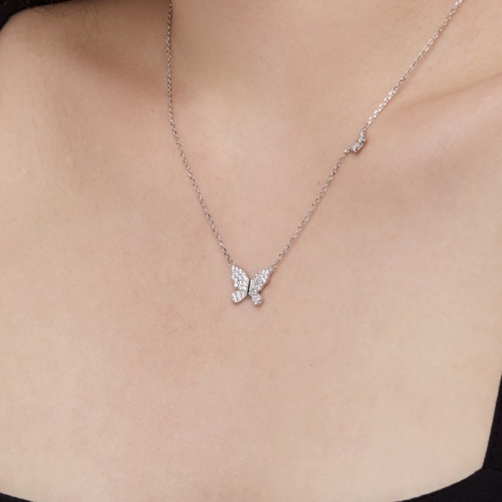 Sidabrinė grandinėlė su cirkonio pakabuku "Drugelis"
