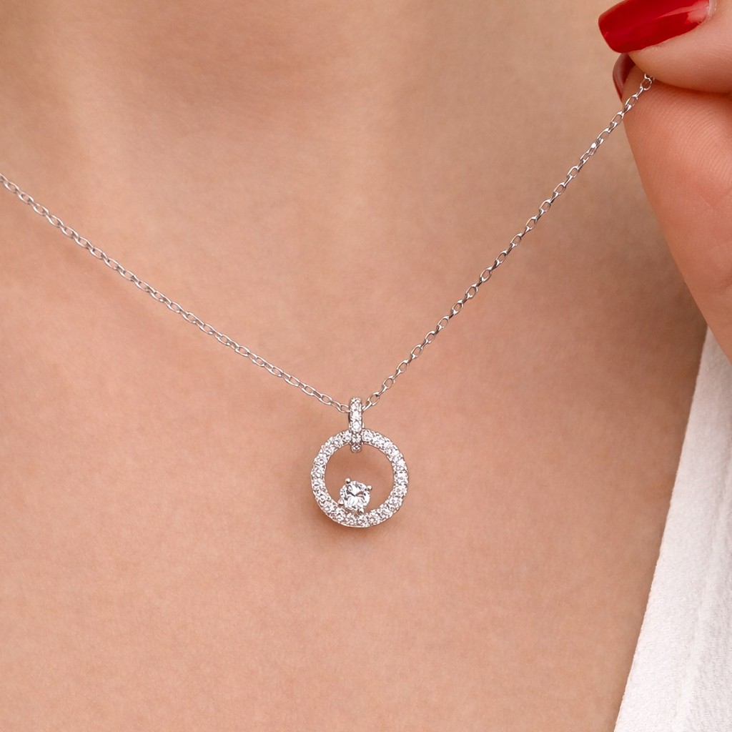 Sidabrinė grandinėlė su cirkonio pakabuku