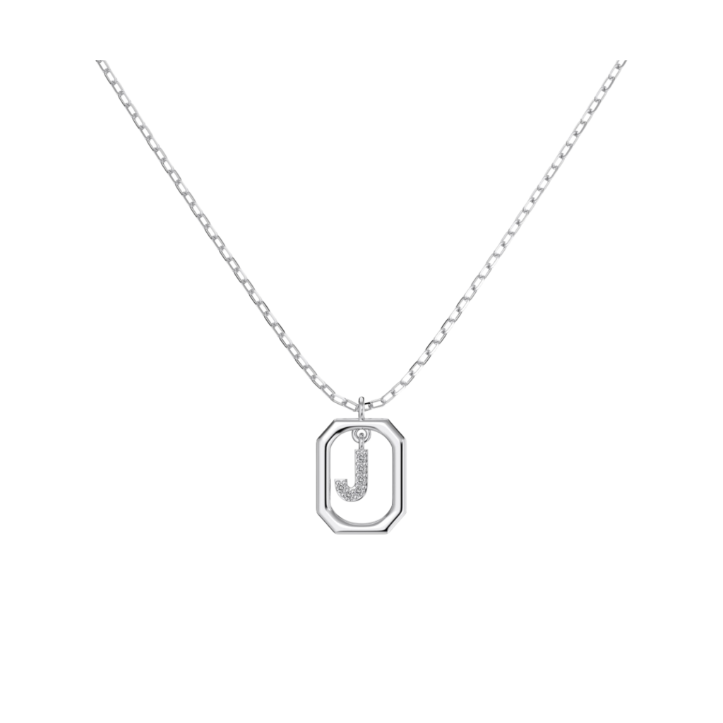 Sidabrinė grandinėlė su cirkonio pakabuku "Raidė J"
