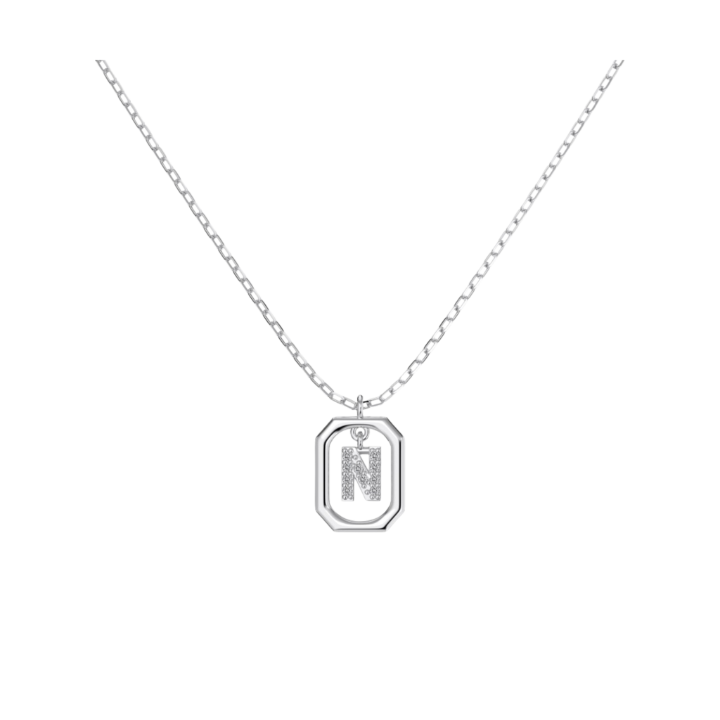 Sidabrinė grandinėlė su cirkonio pakabuku "Raidė N"