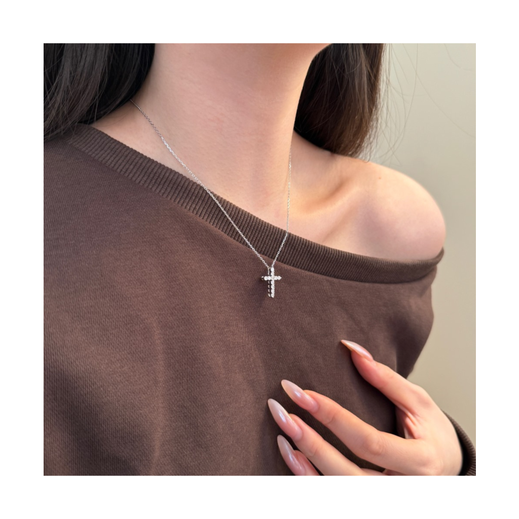 Sidabrinė grandinėlė su cirkonio pakabuku "Kryželis"