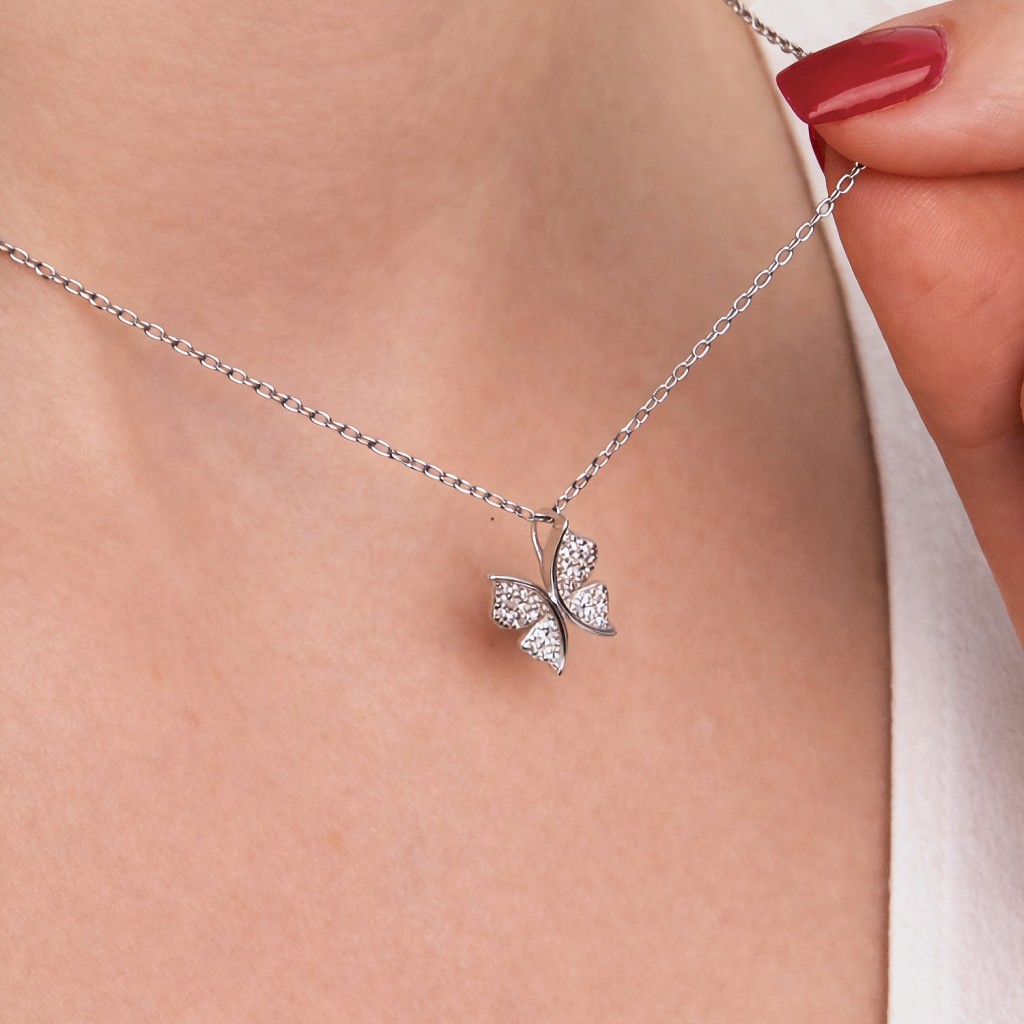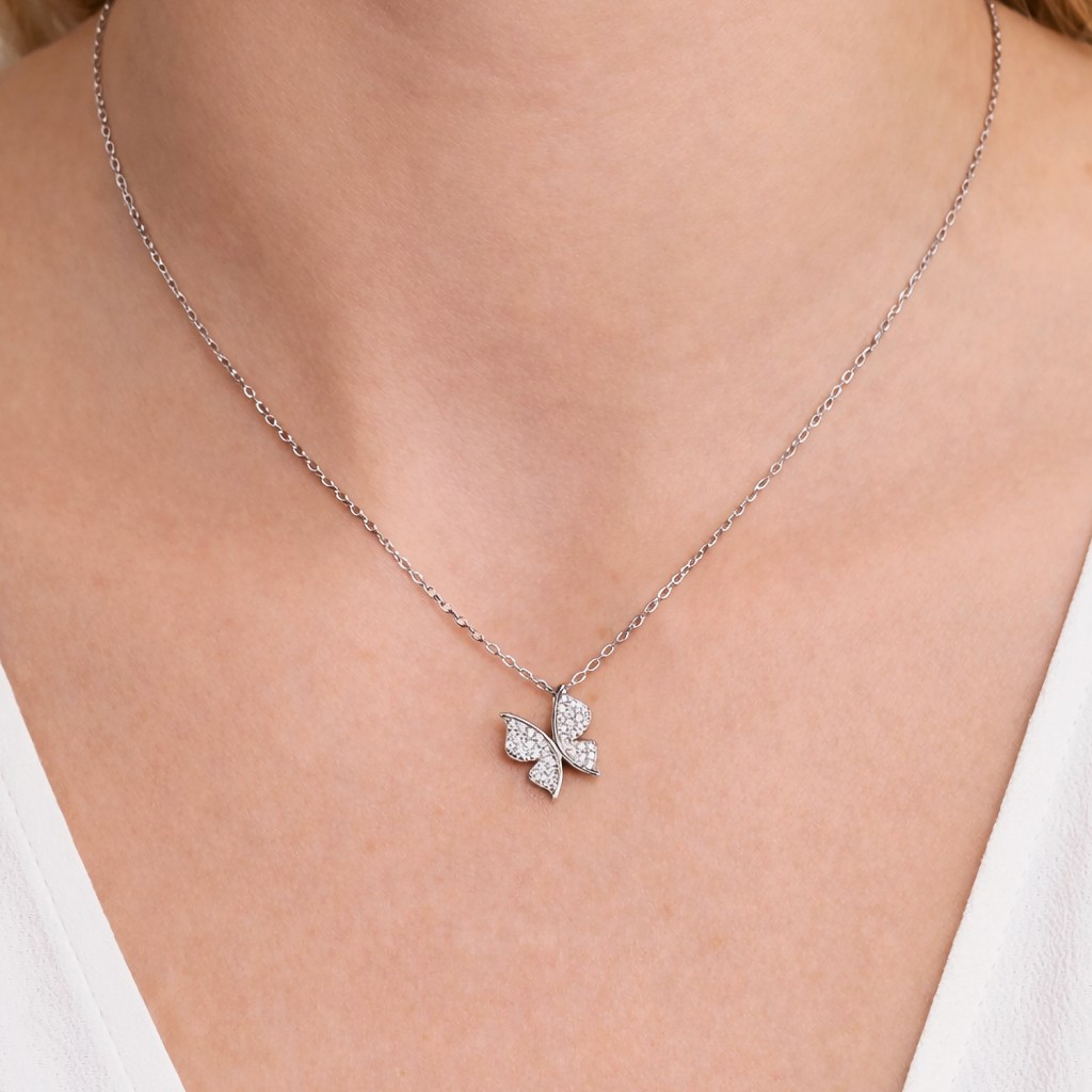 Sidabrinė grandinėlė su cirkonio pakabuku "Drugelis"