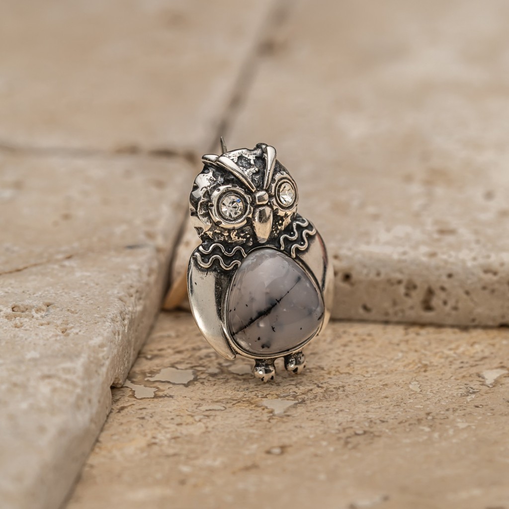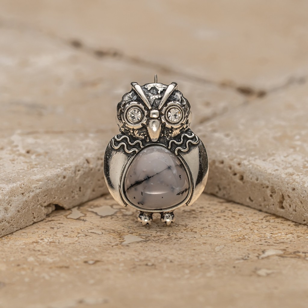 Sidabrinė sagė su agatu ir cirkoniais "Pelėda"