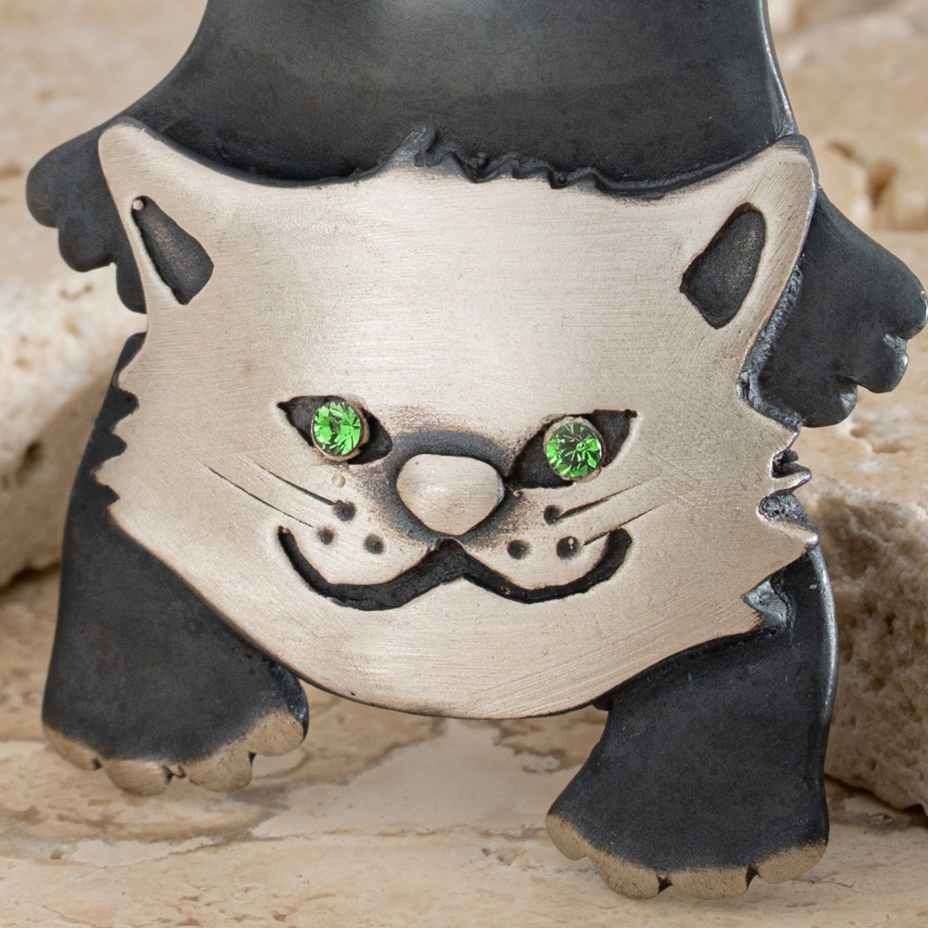 Sidabrinė sagė su kristalais "Katė"