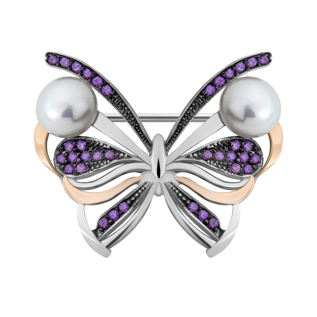 Sidabrinė sagė su cirkoniais ir perlais dengta auksu - Sagės - Goldinga