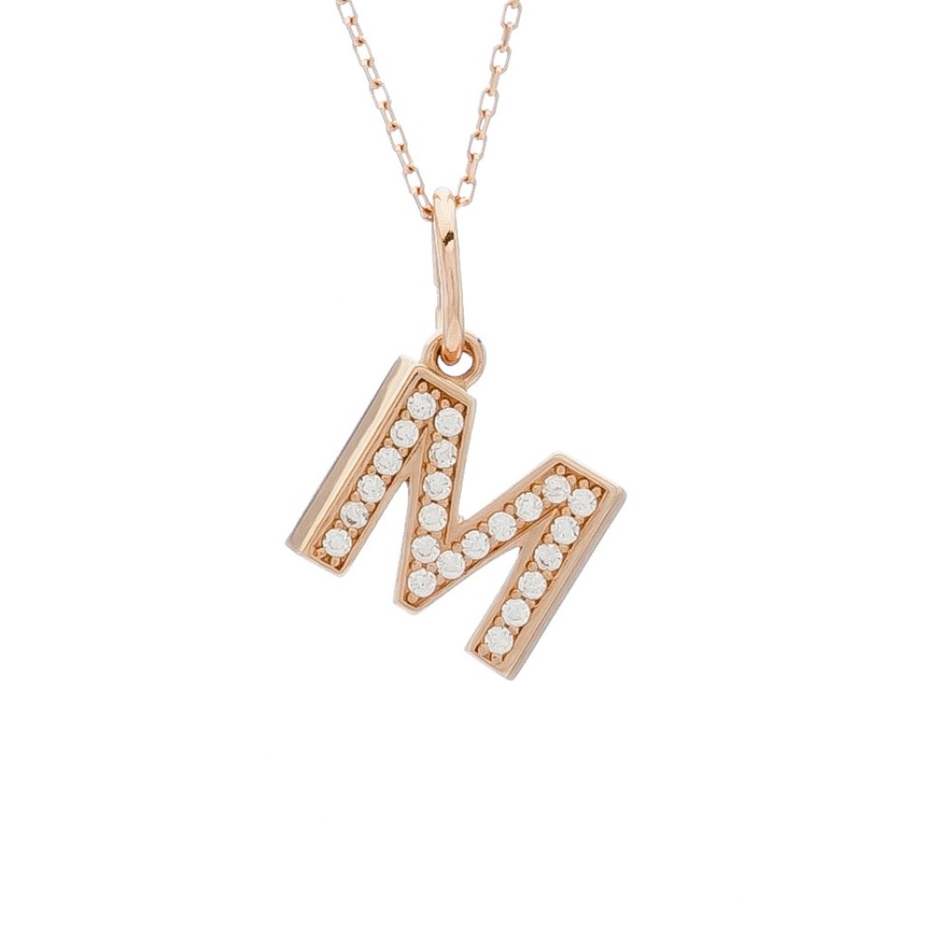Auksinis pakabukas su cirkoniais raidė "M" - Auksiniai pakabukai - Goldinga