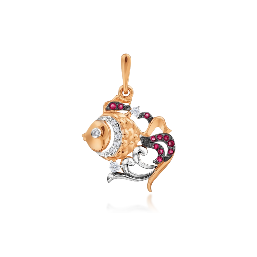 Auksinis pakabukas su cirkoniais "žuvis" - Auksiniai pakabukai - Goldinga
