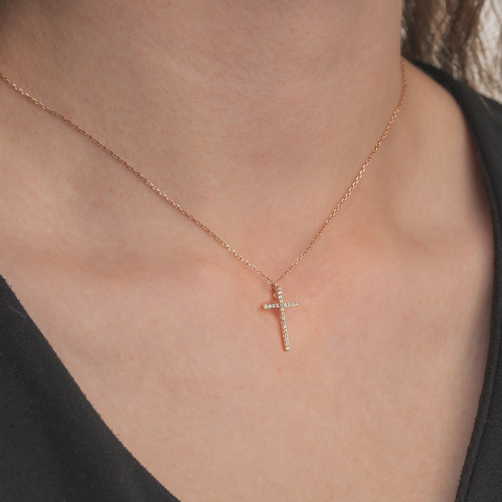 Auksinis pakabukas su cirkoniais "Kryželis" - Kryželiai ir ikonos - Goldinga
