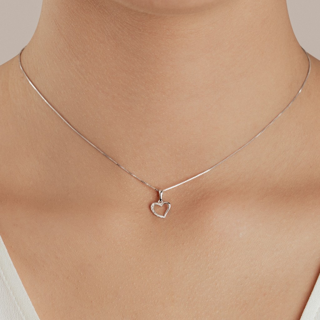 Balto aukso pakabukas su deimantais "Širdelė"