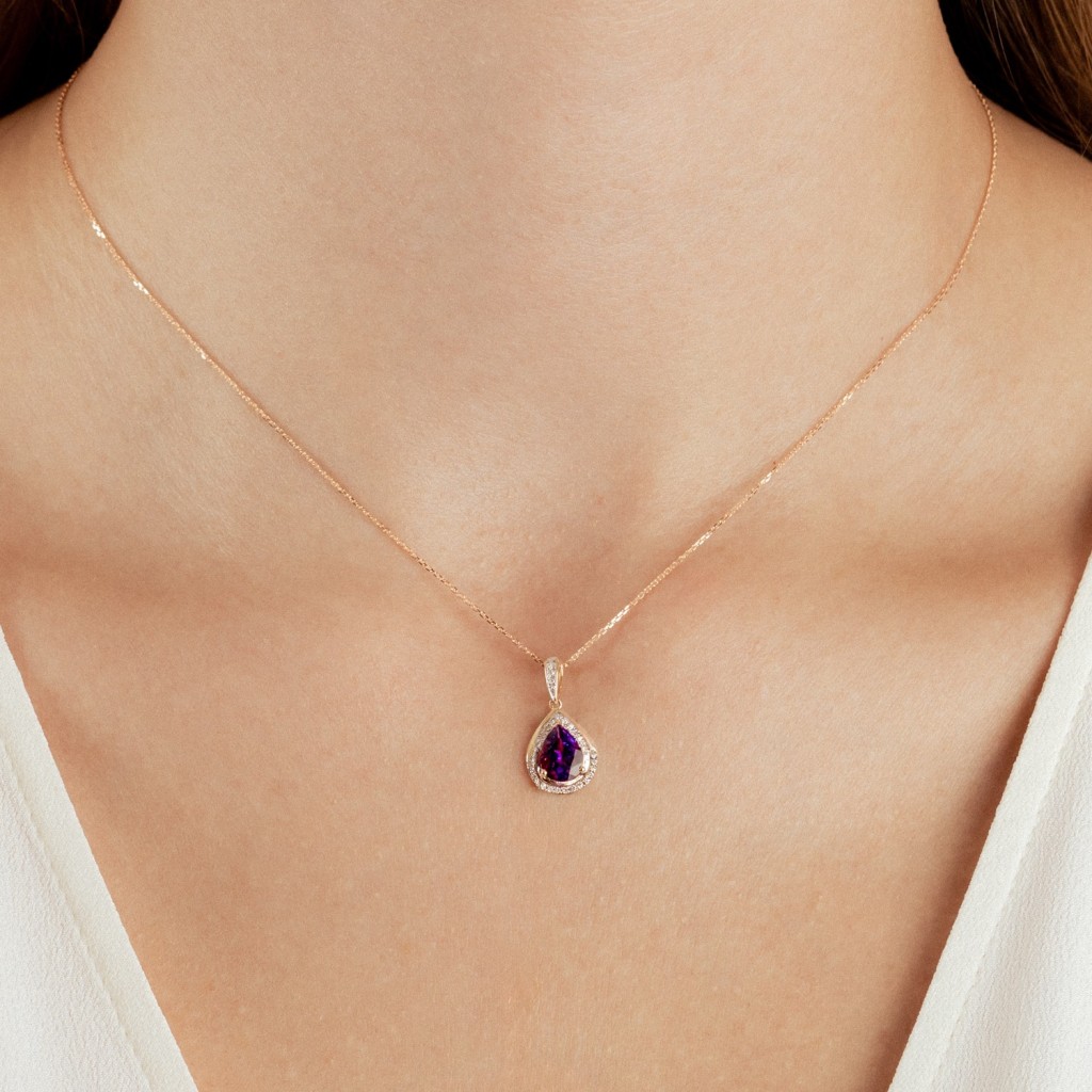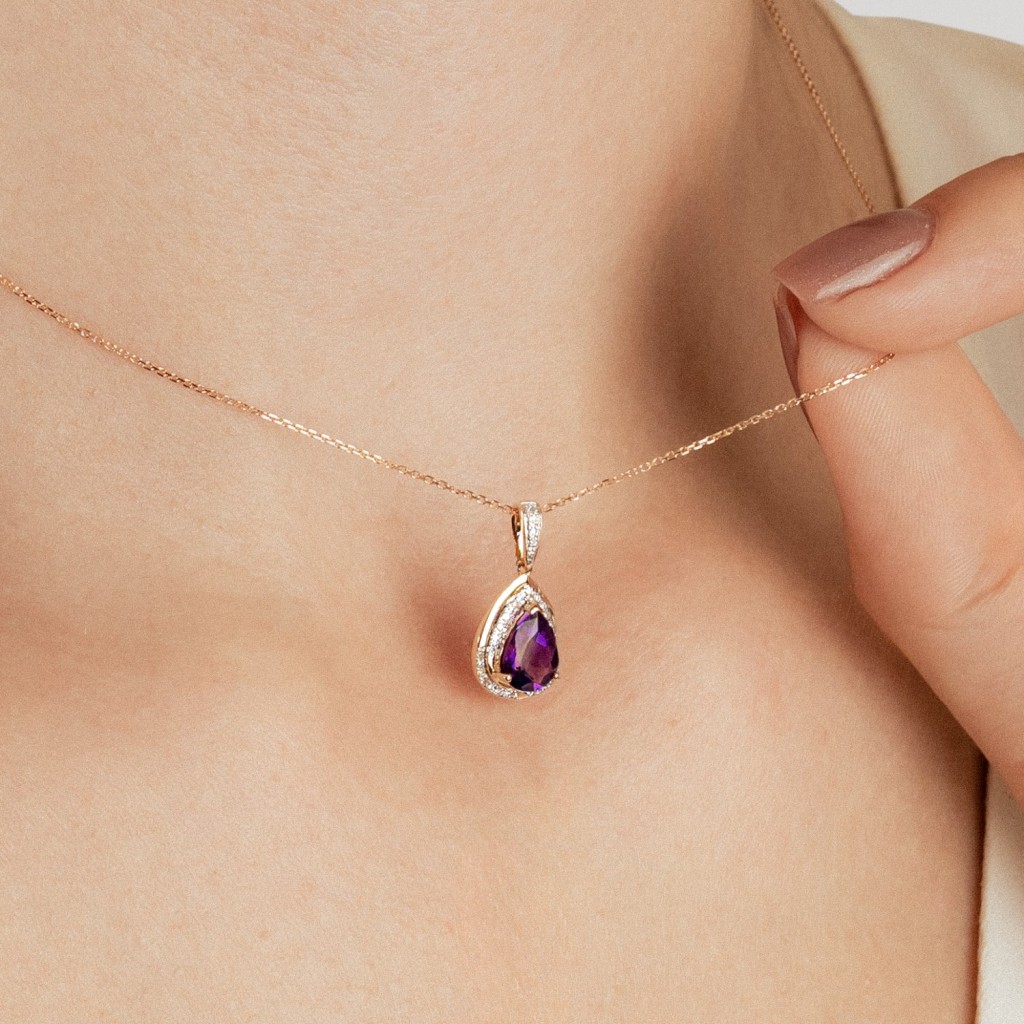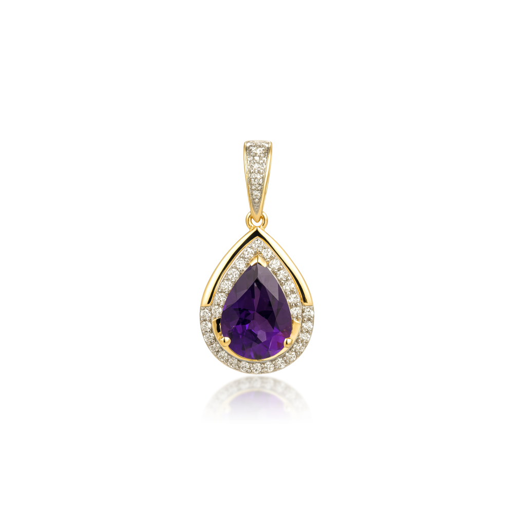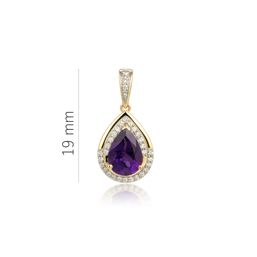 Geltono aukso pakabukas su ametistu ir deimantais