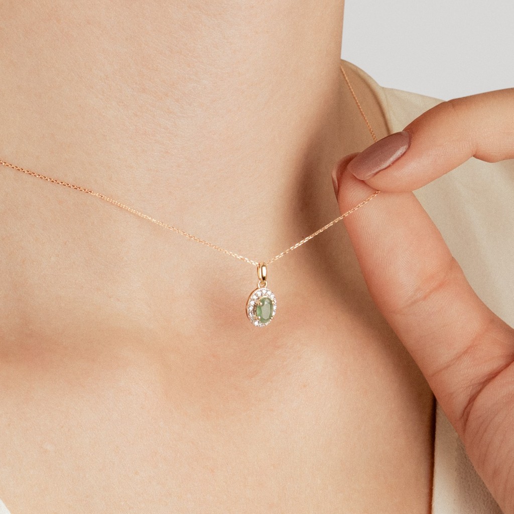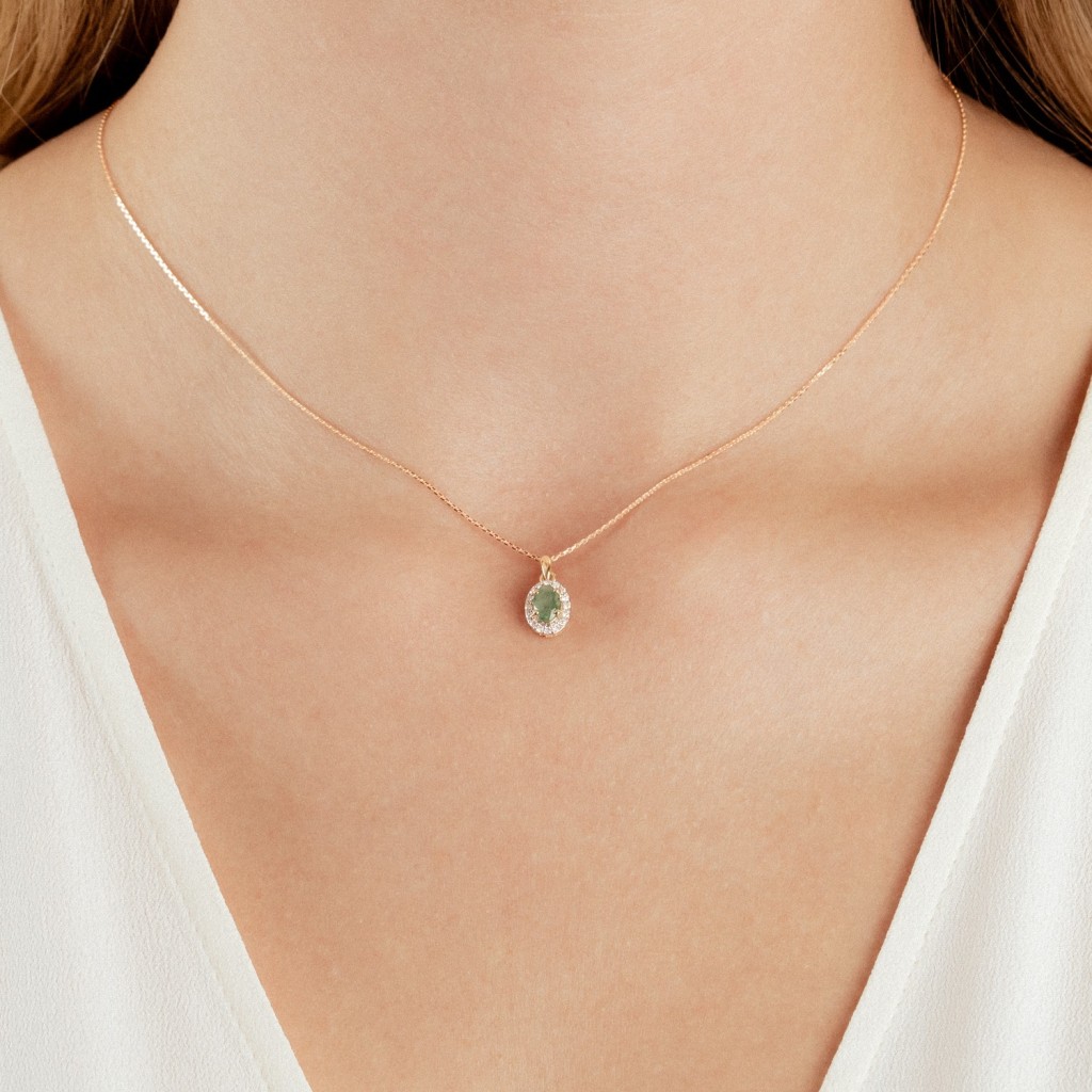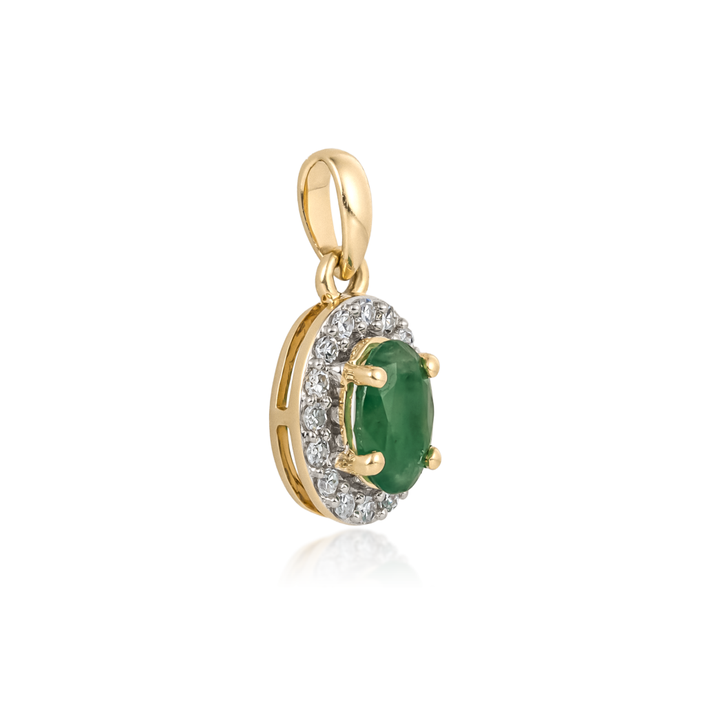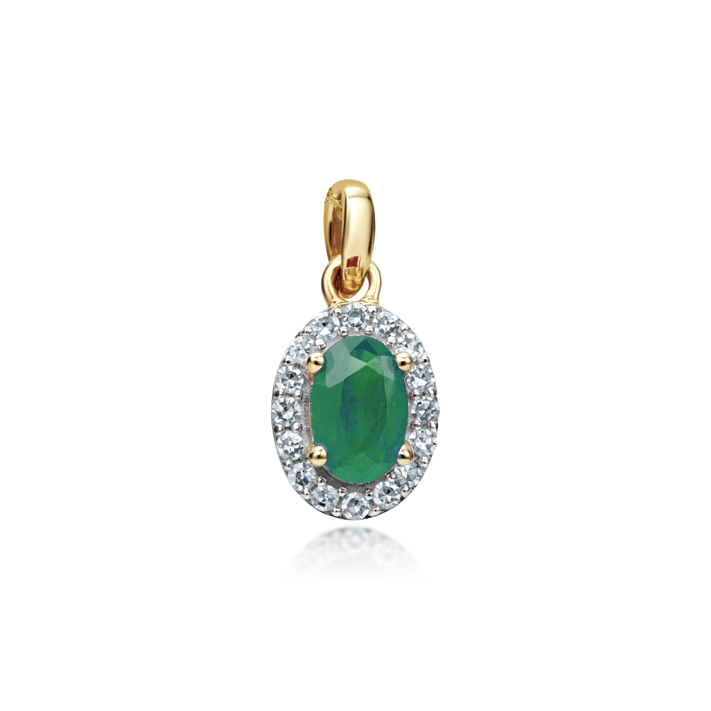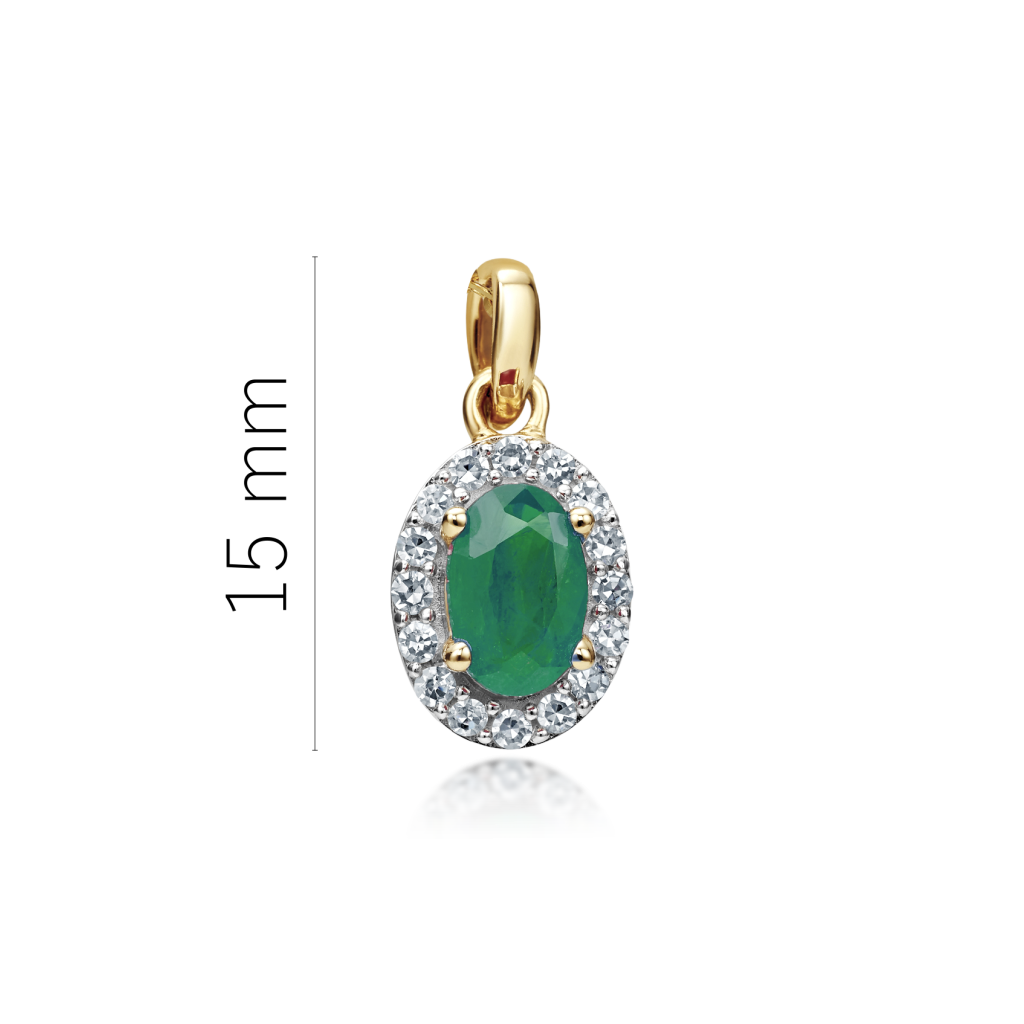 Geltono aukso pakabukas su smaragdu ir deimantais