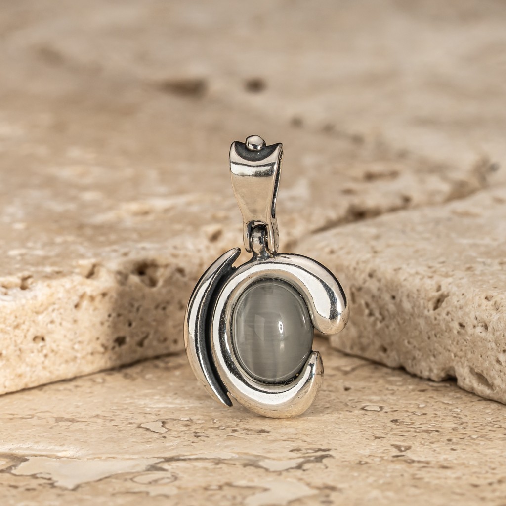 Sidabrinis pakabukas su katės akies akmeniu