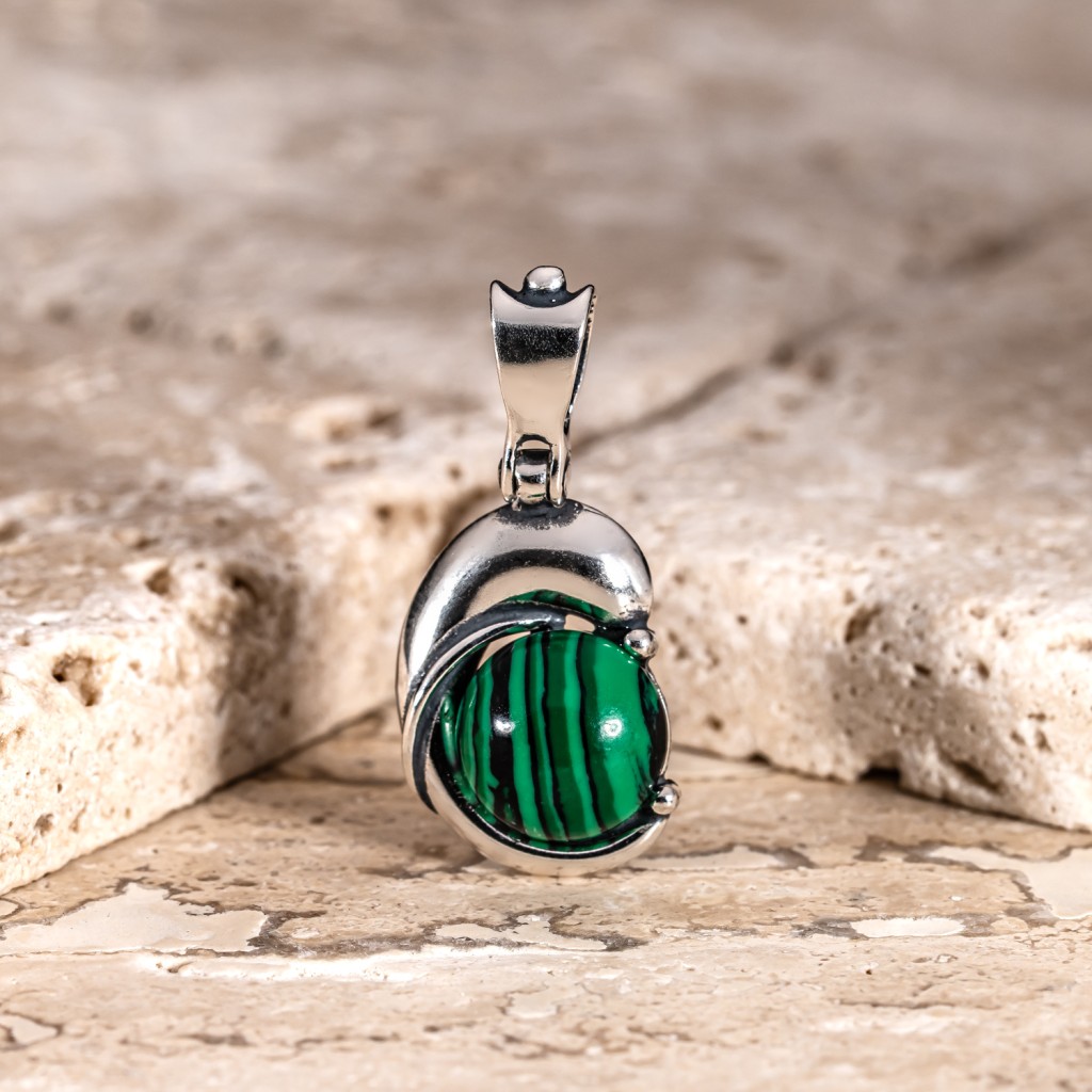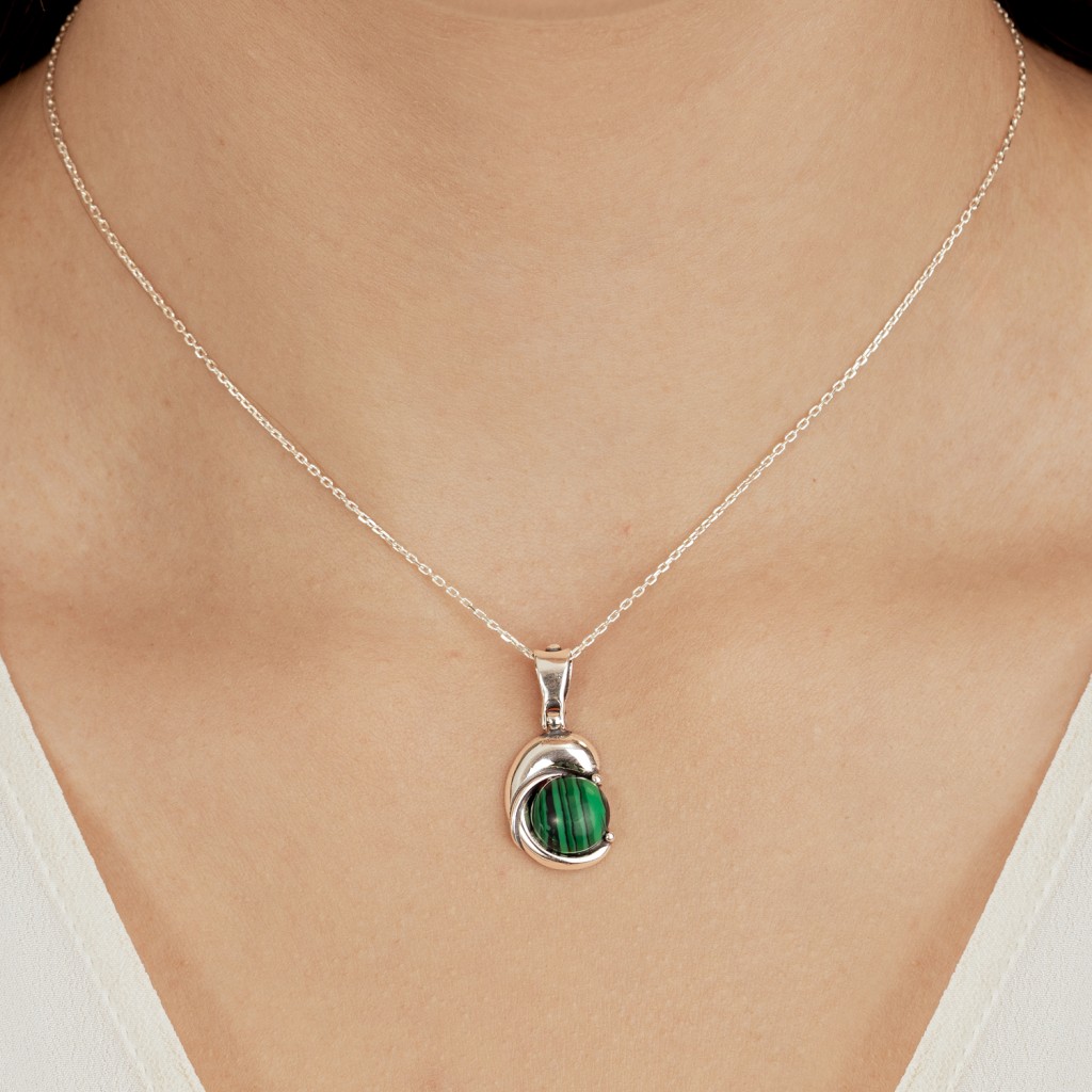 Sidabrinis pakabukas su malachitu