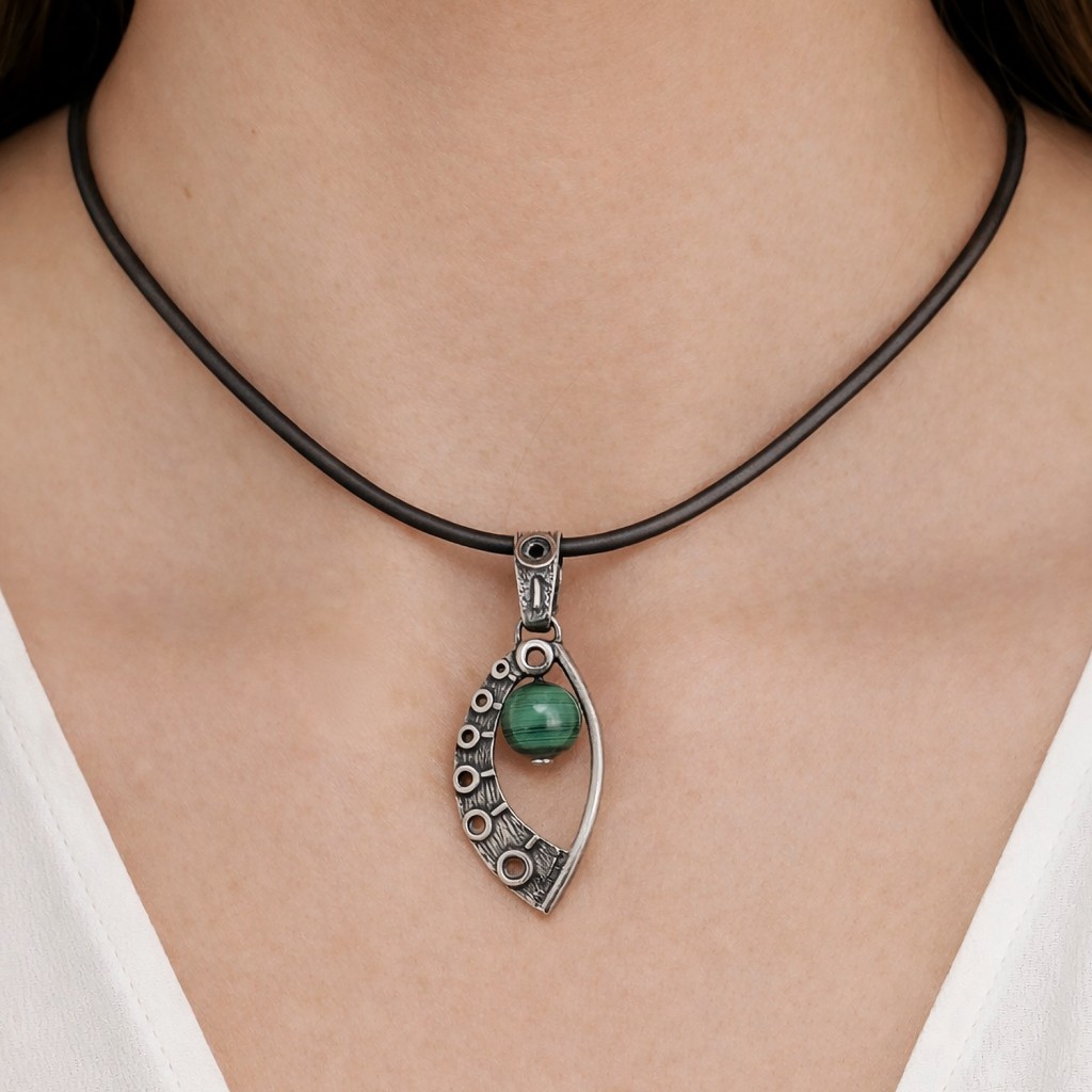 Sidabrinis pakabukas su malachitu