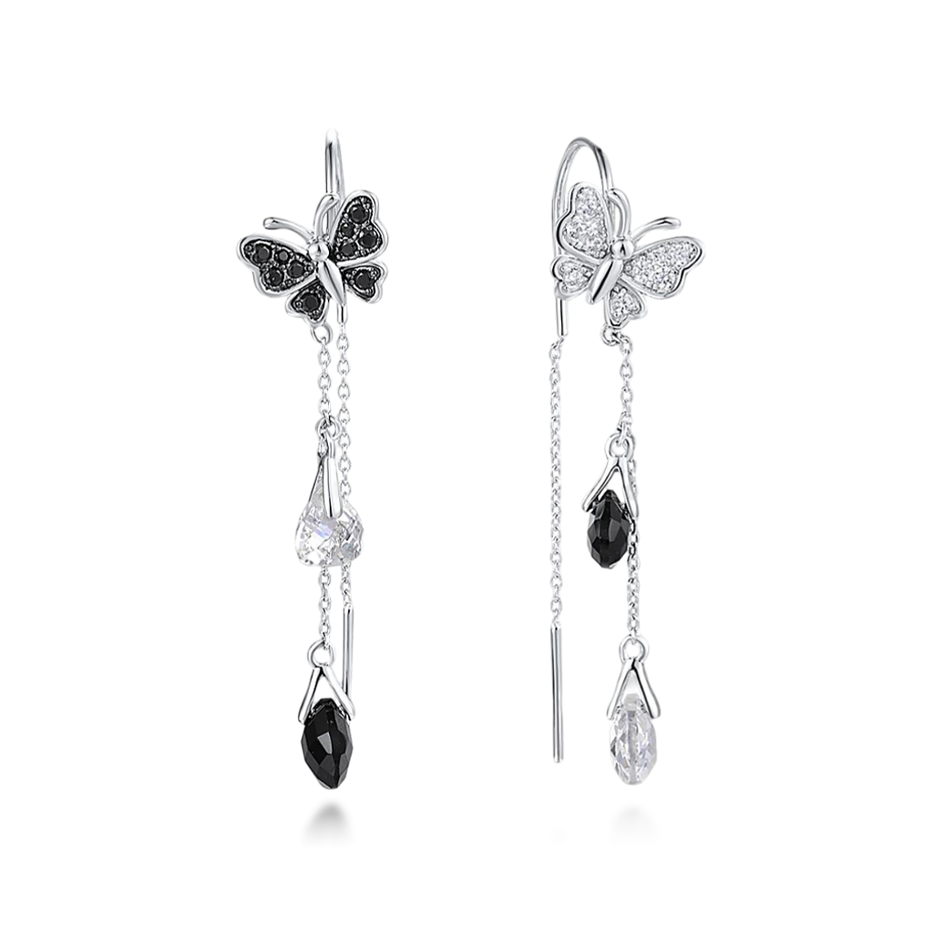 Sidabriniai auskarai su oniksu ir cirkoniais