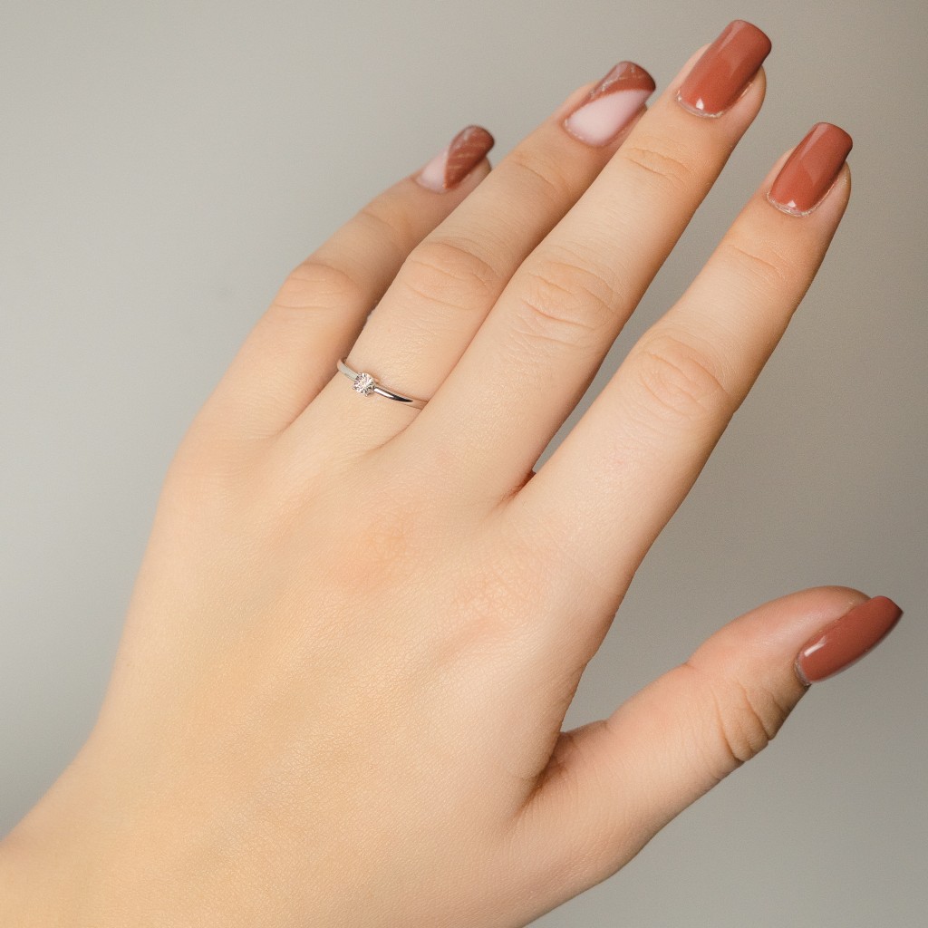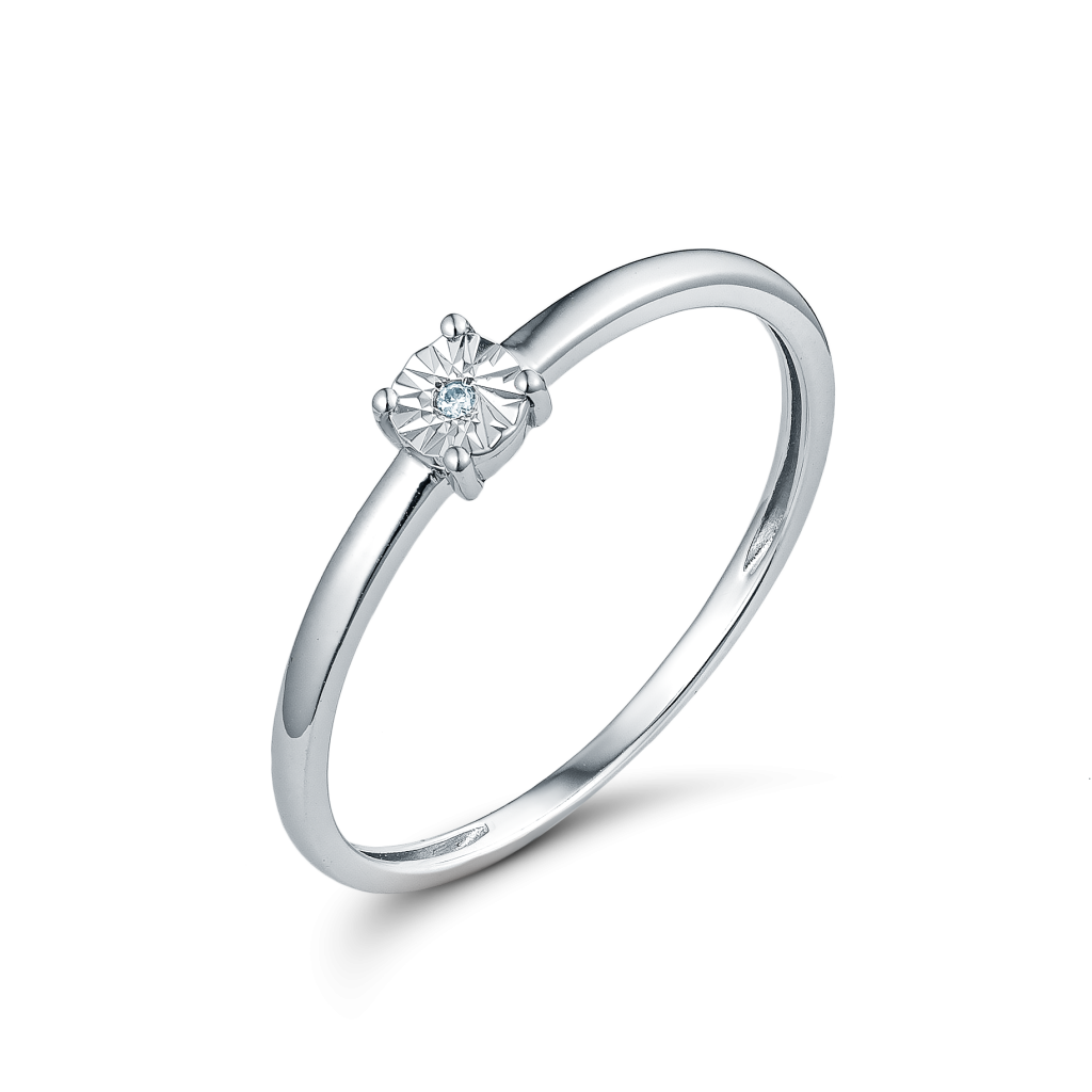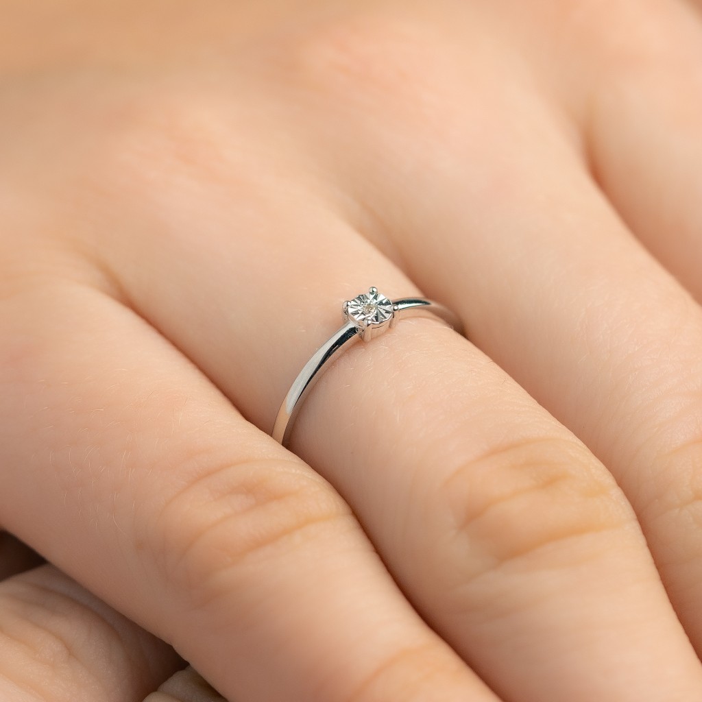 Balto aukso žiedas su deimantu - Auksiniai Žiedai su brangakmeniais - Goldinga