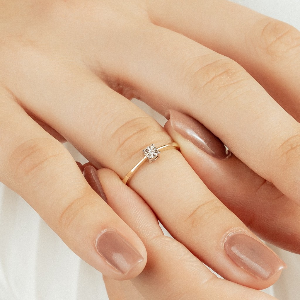 Geltono aukso žiedas su deimantu