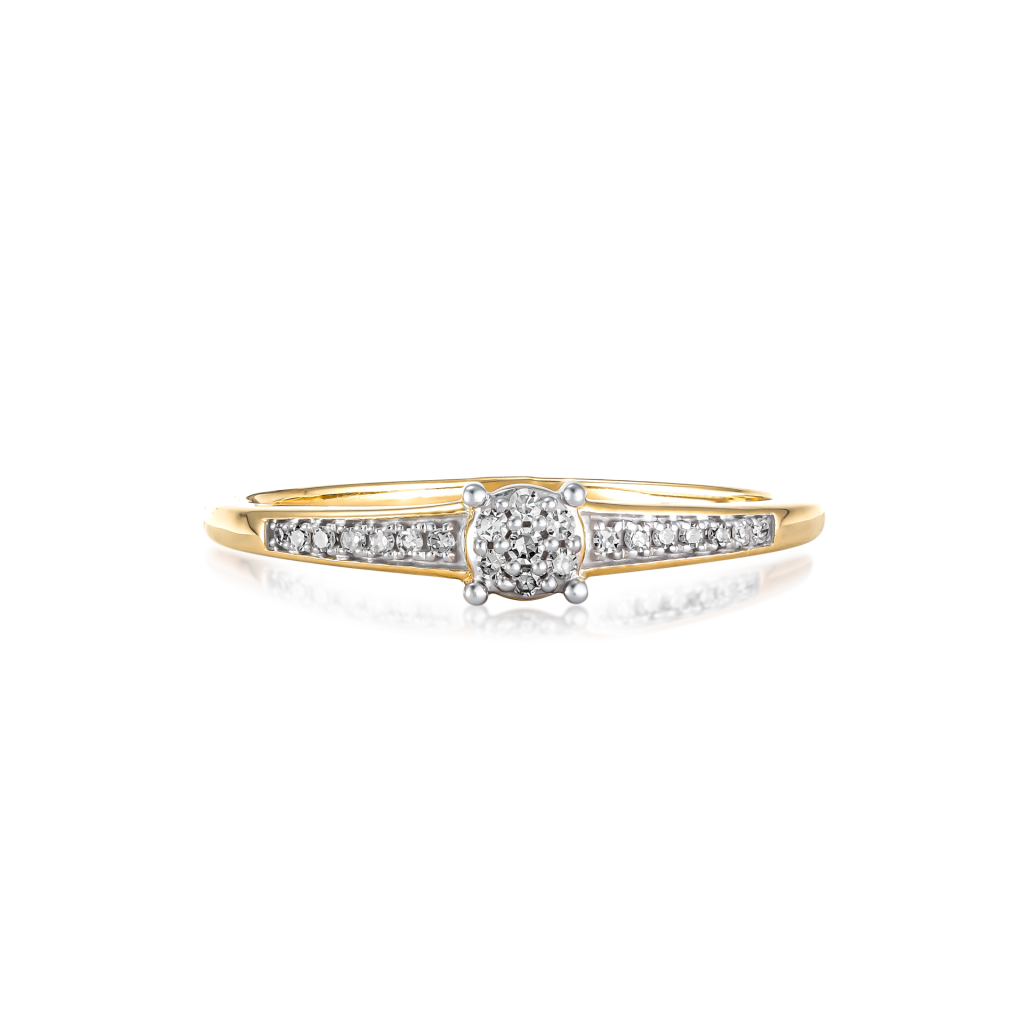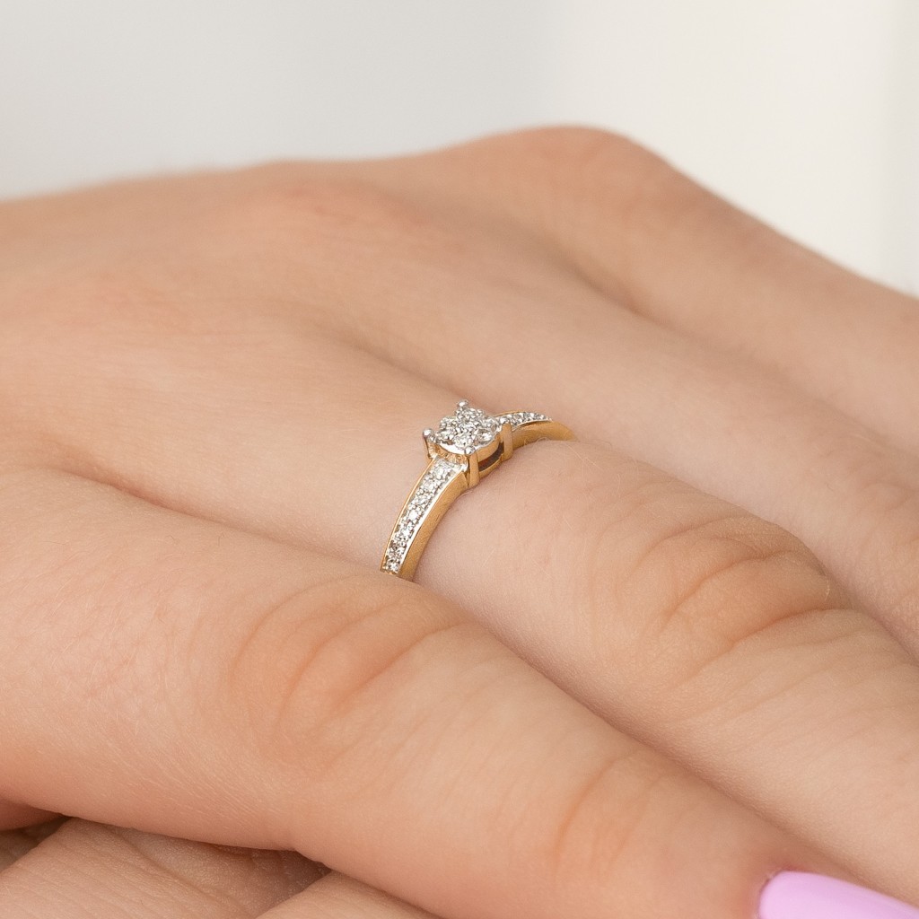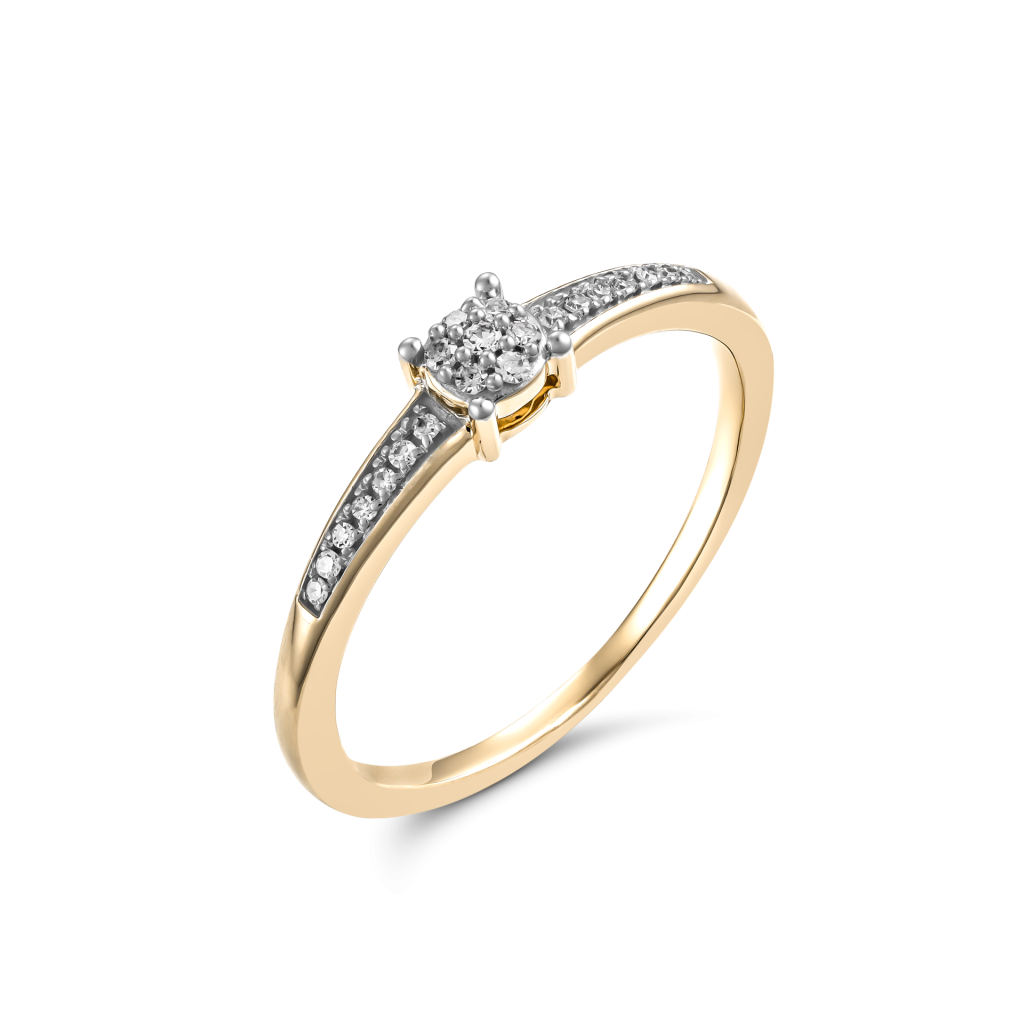 Geltono aukso žiedas su deimantais