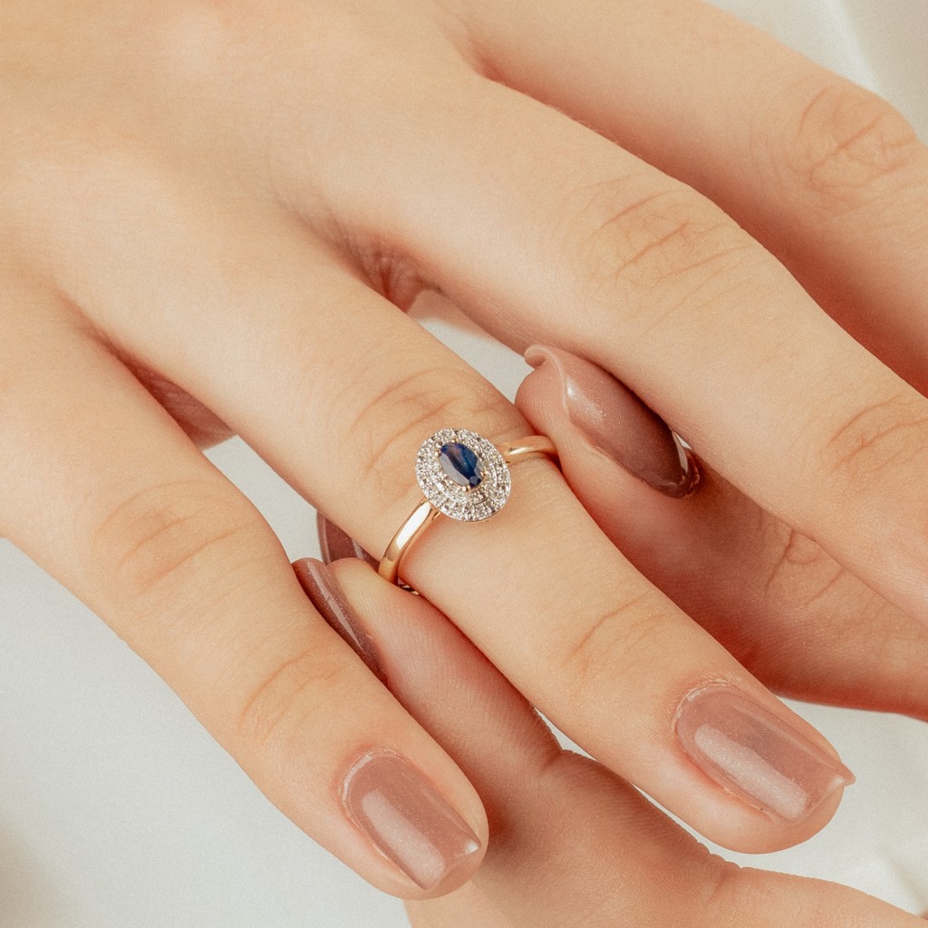 24 deimantai, 0.1ct, RW-W, VS-SI, 1 safyras, 0.26ct, H, SI