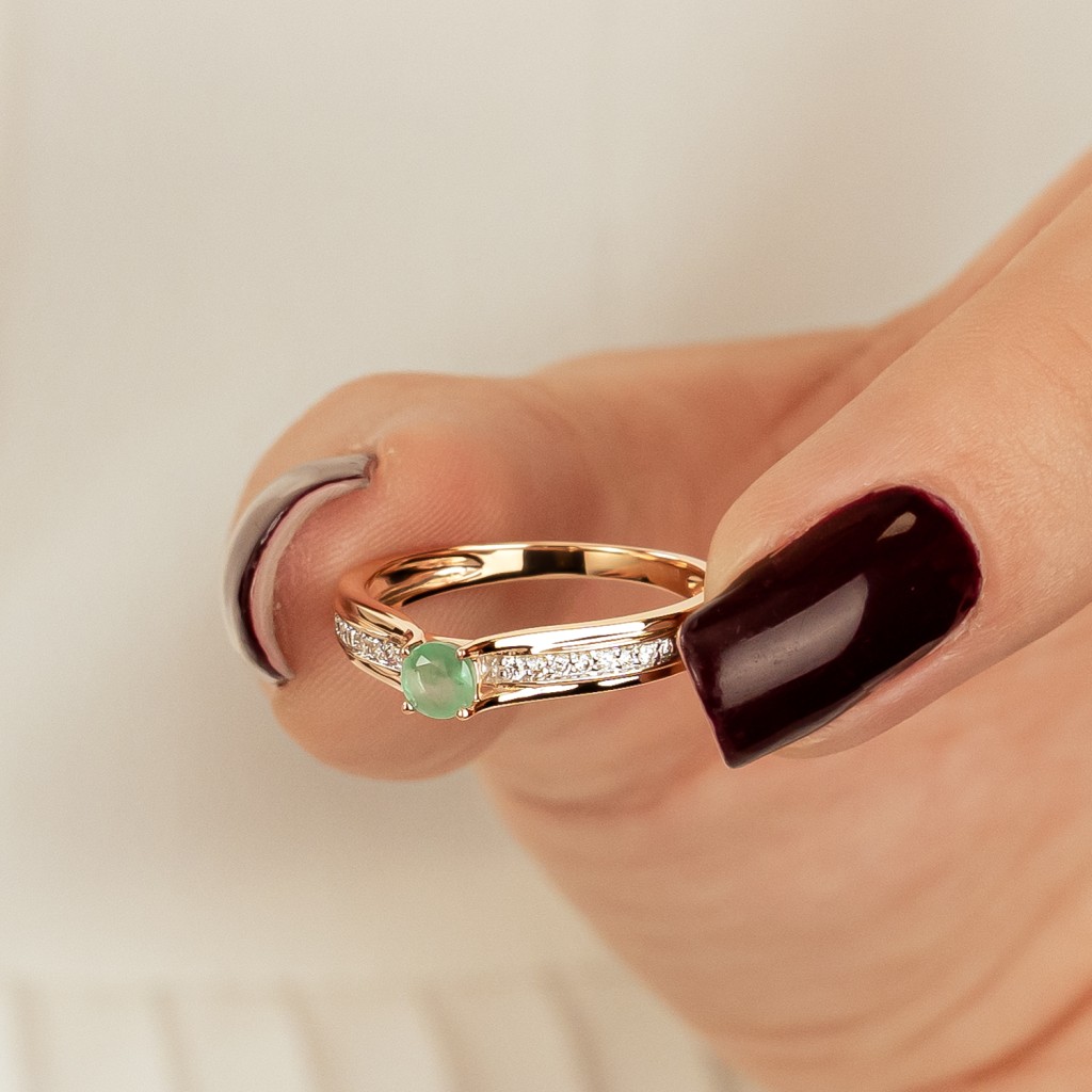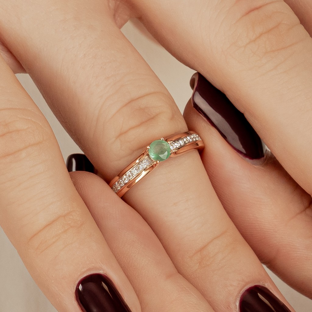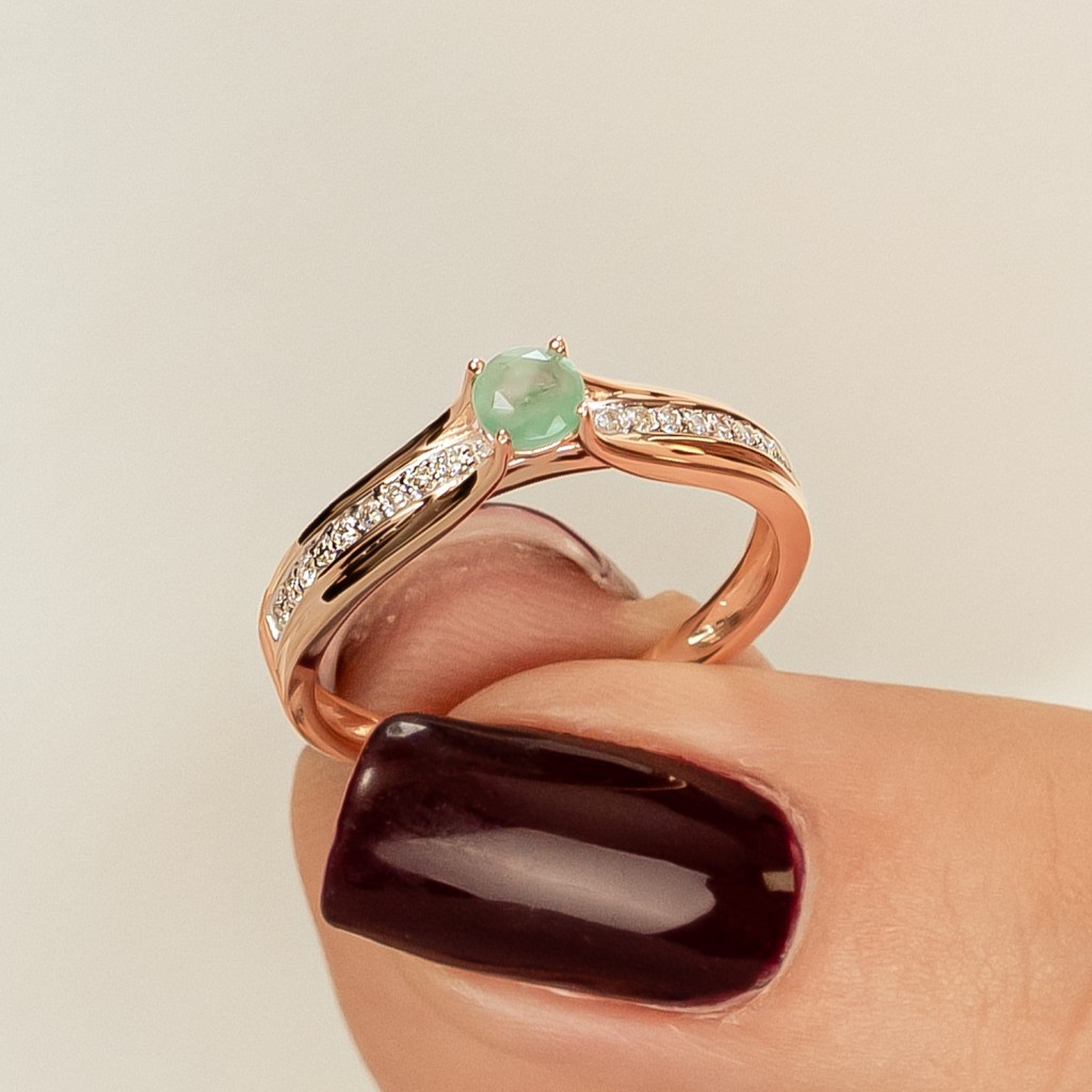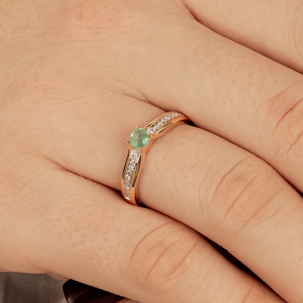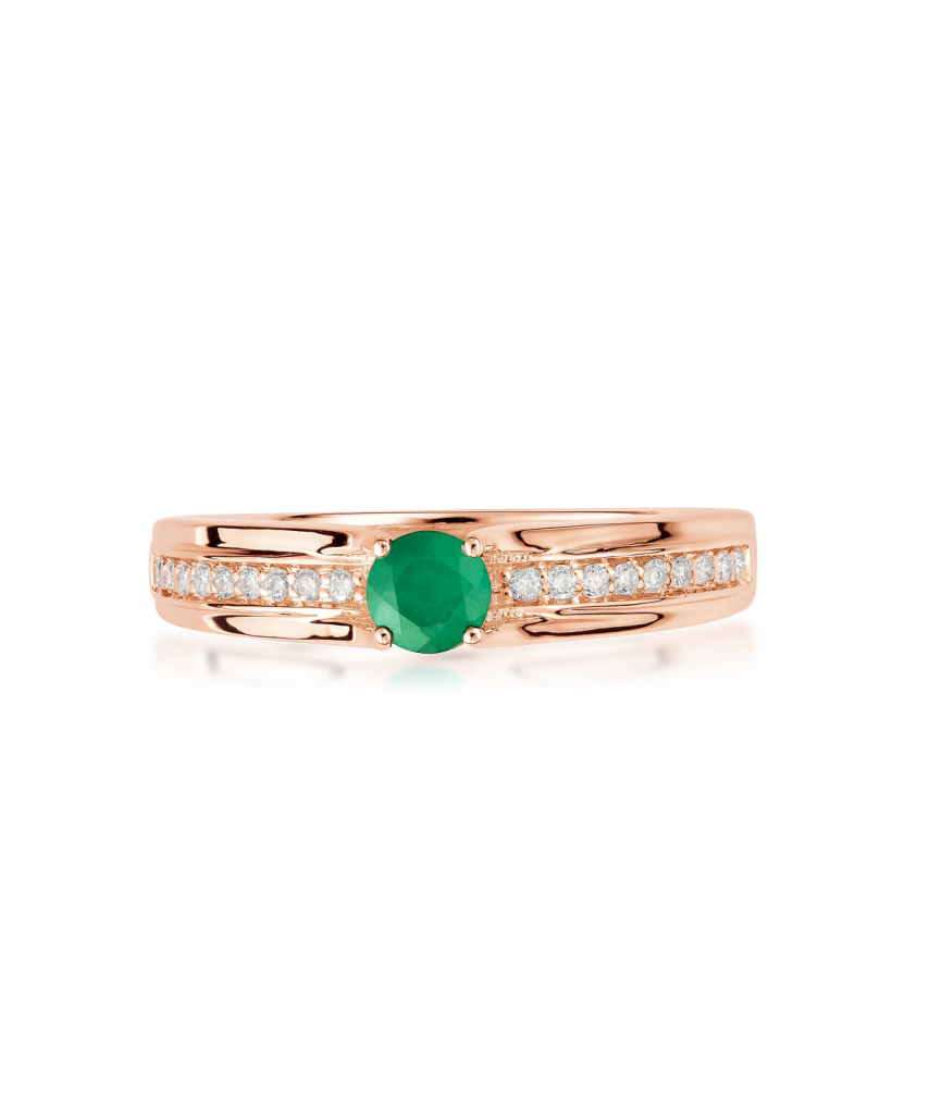 Auksinis žiedas su deimantais ir smaragdu