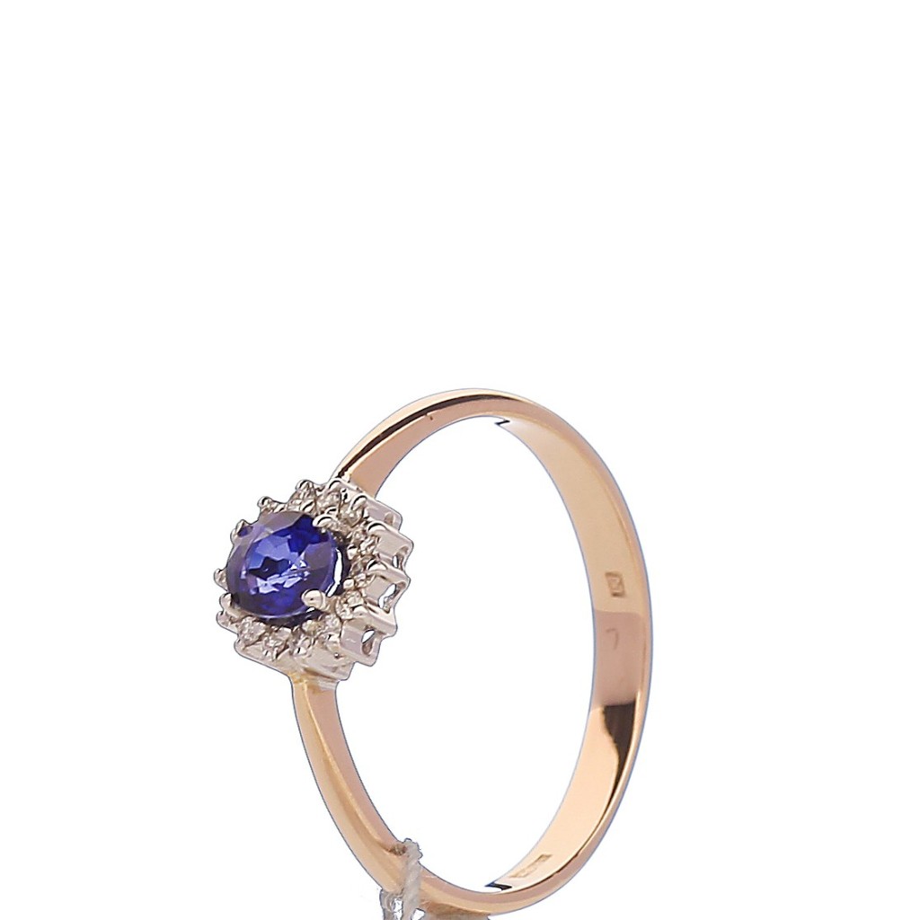 Auksinis žiedas su safyru ir briliantais - Auksiniai žiedai - Goldinga