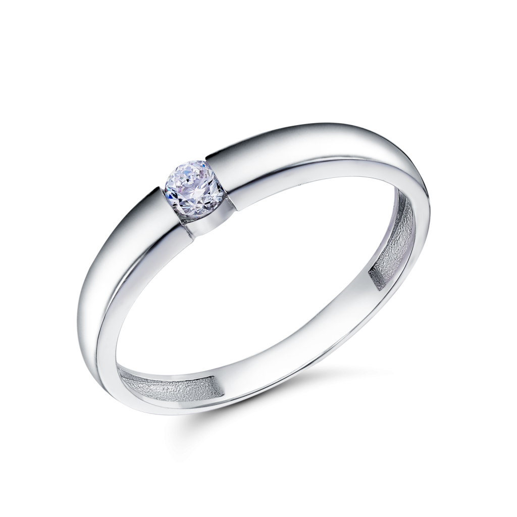 Balto aukso žiedas su cirkoniu - Auksiniai žiedai - Goldinga