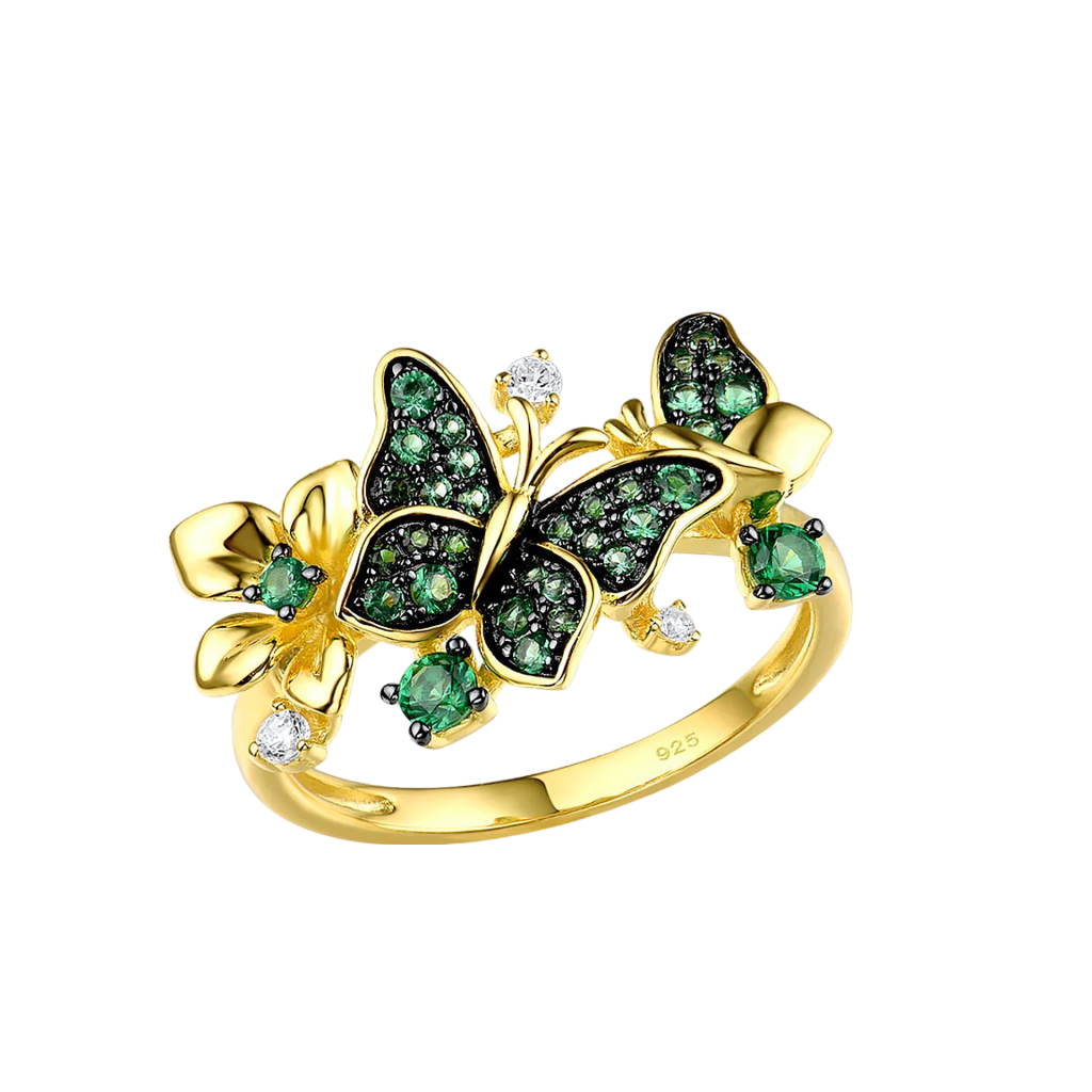 Sidabrinis paauksuotas žiedas su cirkoniais "Drugeliai" - Sidabriniai žiedai - Goldinga